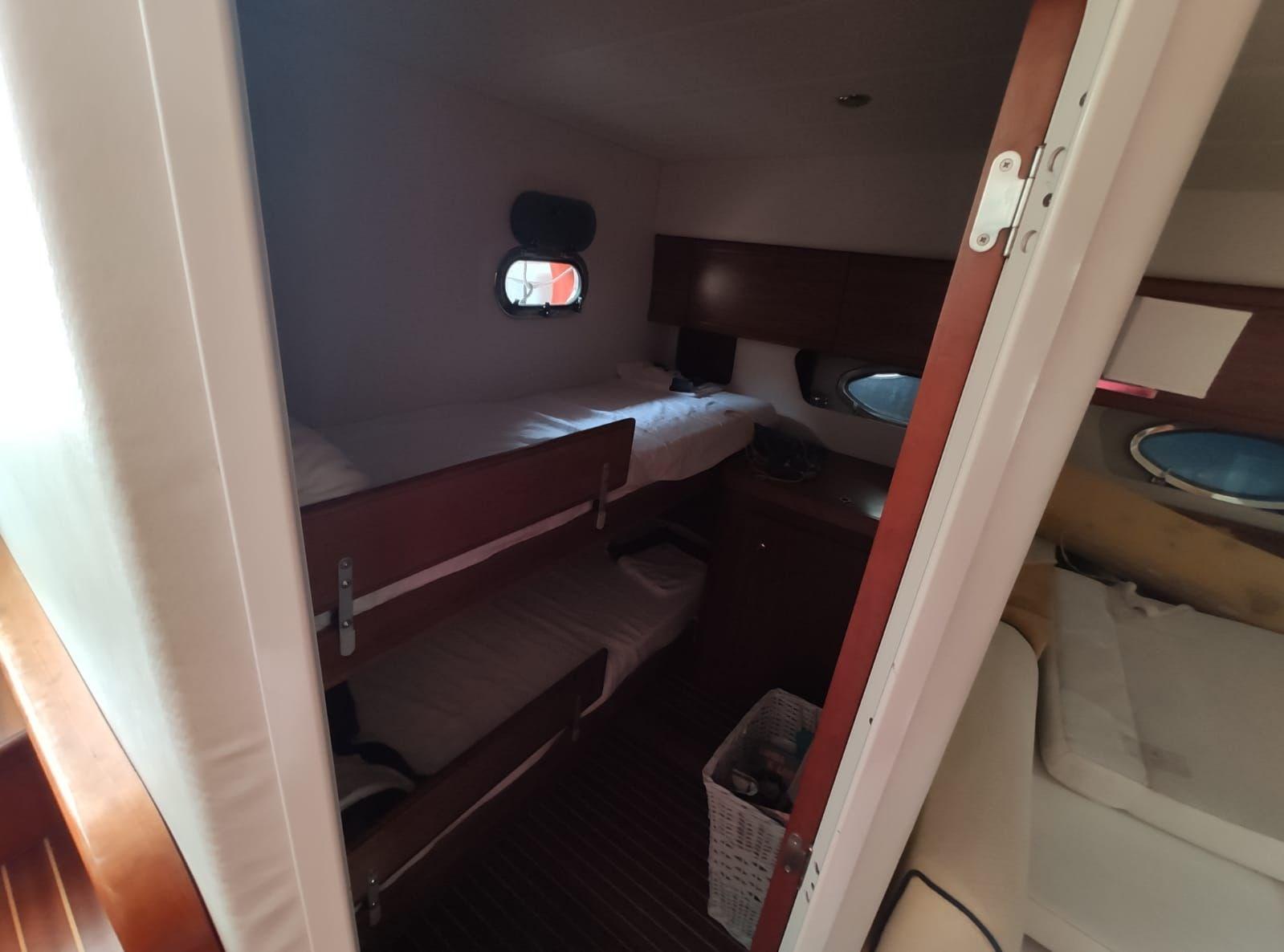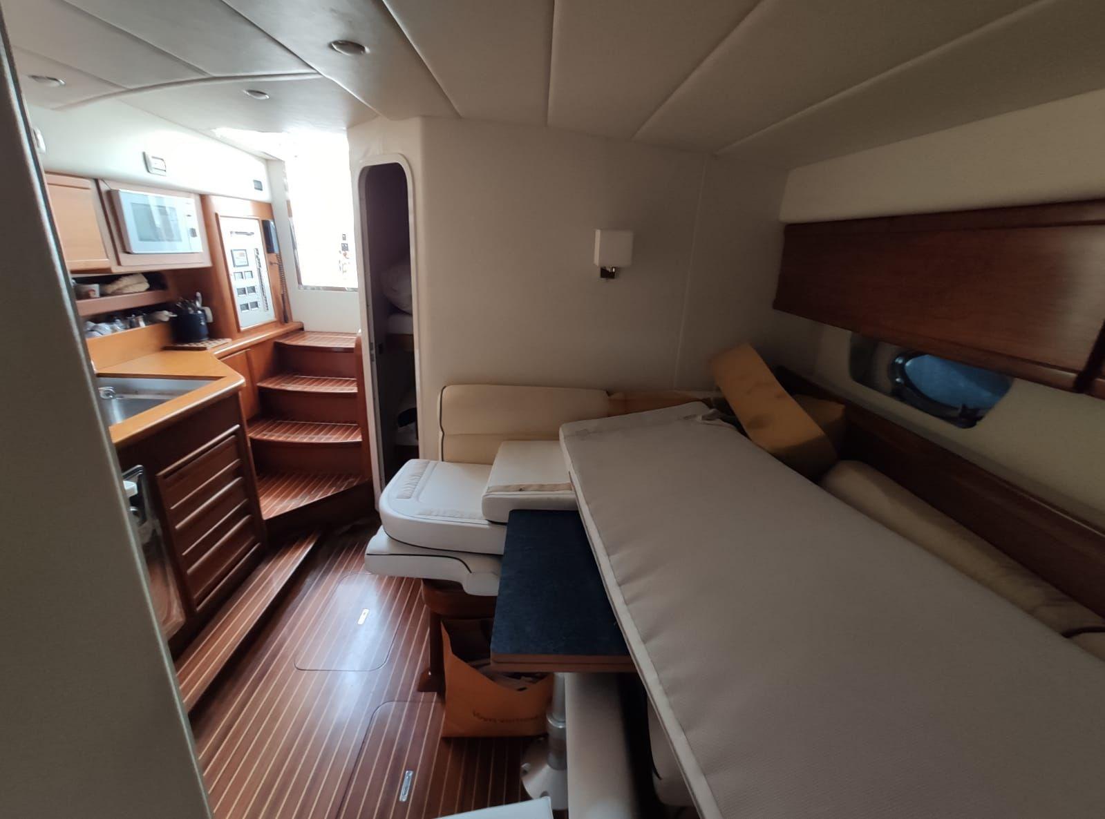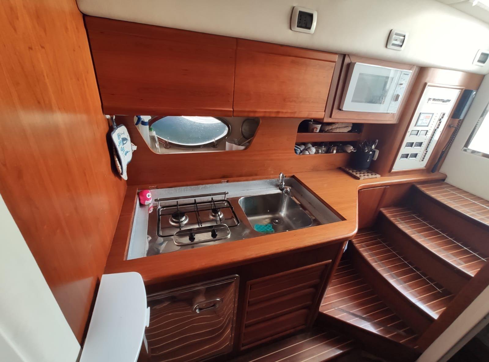 Alarme moteur, Alarme de pompe de cale, Alternateur, Eau sous pression, Douche de cockpit, Flaps hydrauliques, Extincteur(s) fixe(s), Éclairage de courtoisie, Passerelle (IDRAULICA), Plateforme arrière, Pompe de cale automatique, Pompe de cale manuelle, Cockpit en teck, Prise de quai, Guindeau électrique, table de cockpit, Table pliante de salon, Corne.