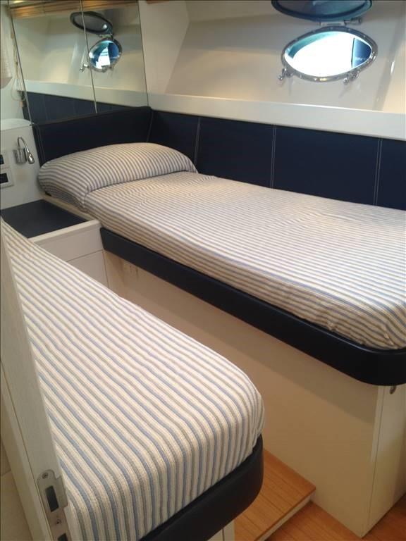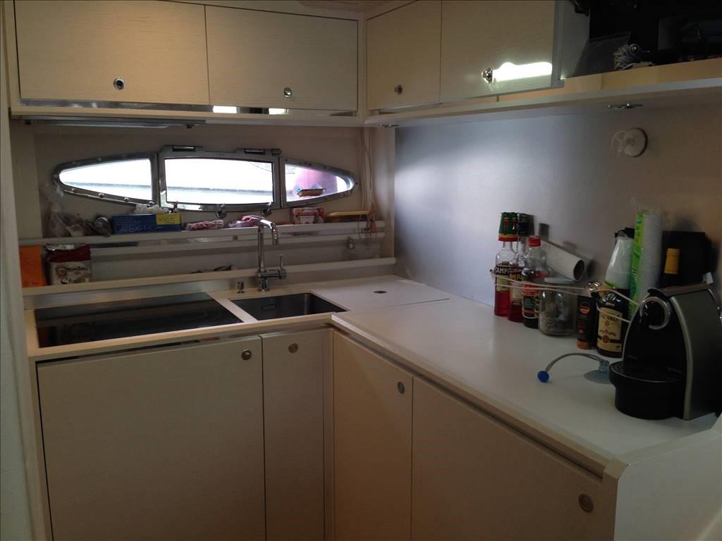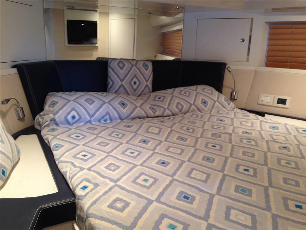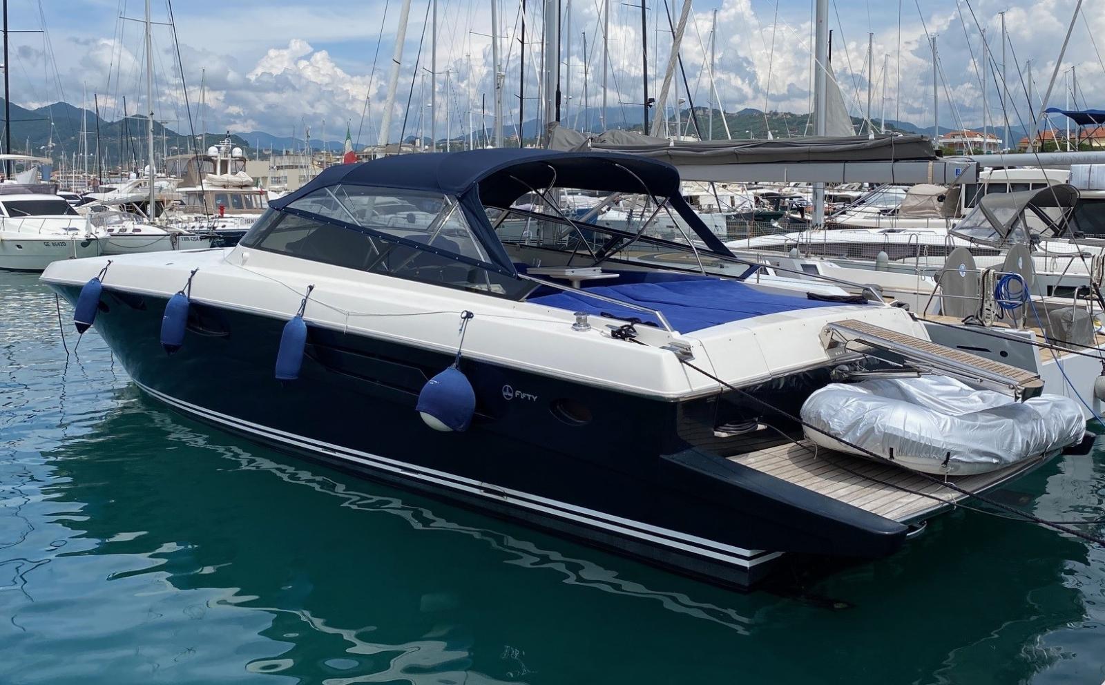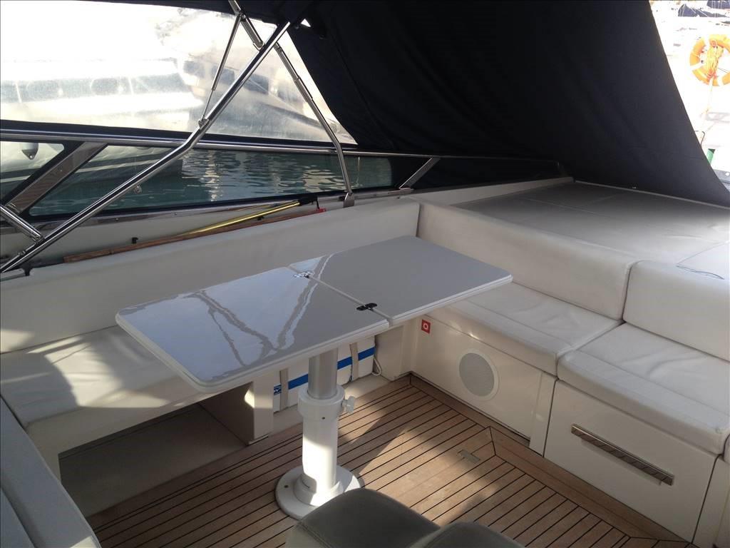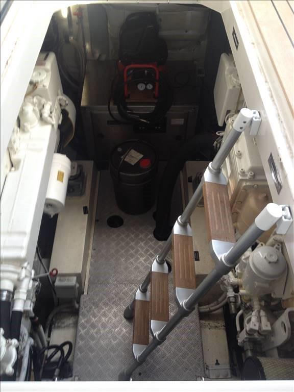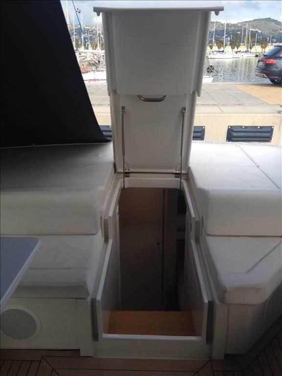 Alarme moteur, Alarme de pompe de cale, Eau sous pression, Couleur spéciale (SCAFO BLU), Douche de cockpit, Flaps hydrauliques, Extincteur(s) fixe(s), Indicateurs de flaps, Éclairage de courtoisie (A LED), Spots sous-marins, Passerelle (IDRAULICA), Plateforme arrière, Pompe de cale automatique, Pompe de cale manuelle, Cockpit en teck, Prise de quai, Guindeau électrique, Echelle de bain, table de cockpit, Corne, Winch électrique arrière.