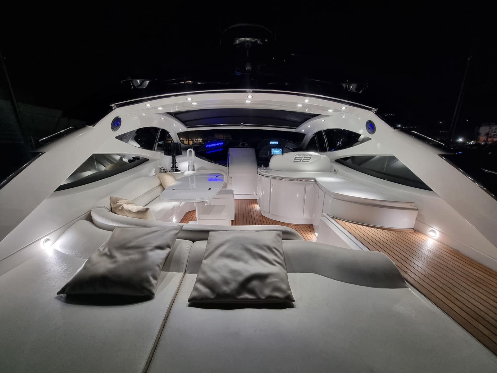 Alarme gaz, Alarme moteur, Alarme de pompe de cale, Ouverture du compartiment moteur électrique, Eau sous pression, Couleur spéciale, Douche de cockpit, Phare de poursuite, Flaps hydrauliques, Hard top, Extincteur(s) fixe(s), Indicateurs de flaps, Lavabo dans le cockpit, Éclairage de courtoisie, Spots sous-marins, Pompe de cale automatique, Pompe de cale manuelle, Cockpit en teck, Prise de quai, Guindeau électrique, Echelle de bain, Selles pour Annexe, table de cockpit, Table pliante de salon, Corne, Winch, Winch électrique arrière, Winch électrique avant.