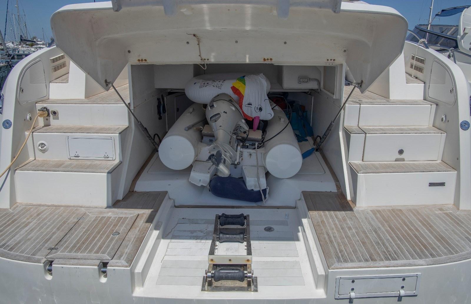 Alarme moteur, Alarme de pompe de cale, Ouverture du compartiment moteur électrique, Auto Dynamic Trim Interceptor, Eau sous pression, Trim hydraulique, Taquets pliants, Passavant en teck, Douche de cockpit, Flaps électriques, Garage à annexe, Hard top, Extincteur(s) fixe(s), Spots sous-marins, Pompe de cale automatique, Porte latérale, Cockpit en teck, Prise de quai, Guindeau électrique, table de cockpit, Annexe, Corne, T-Top, Winch électrique arrière.