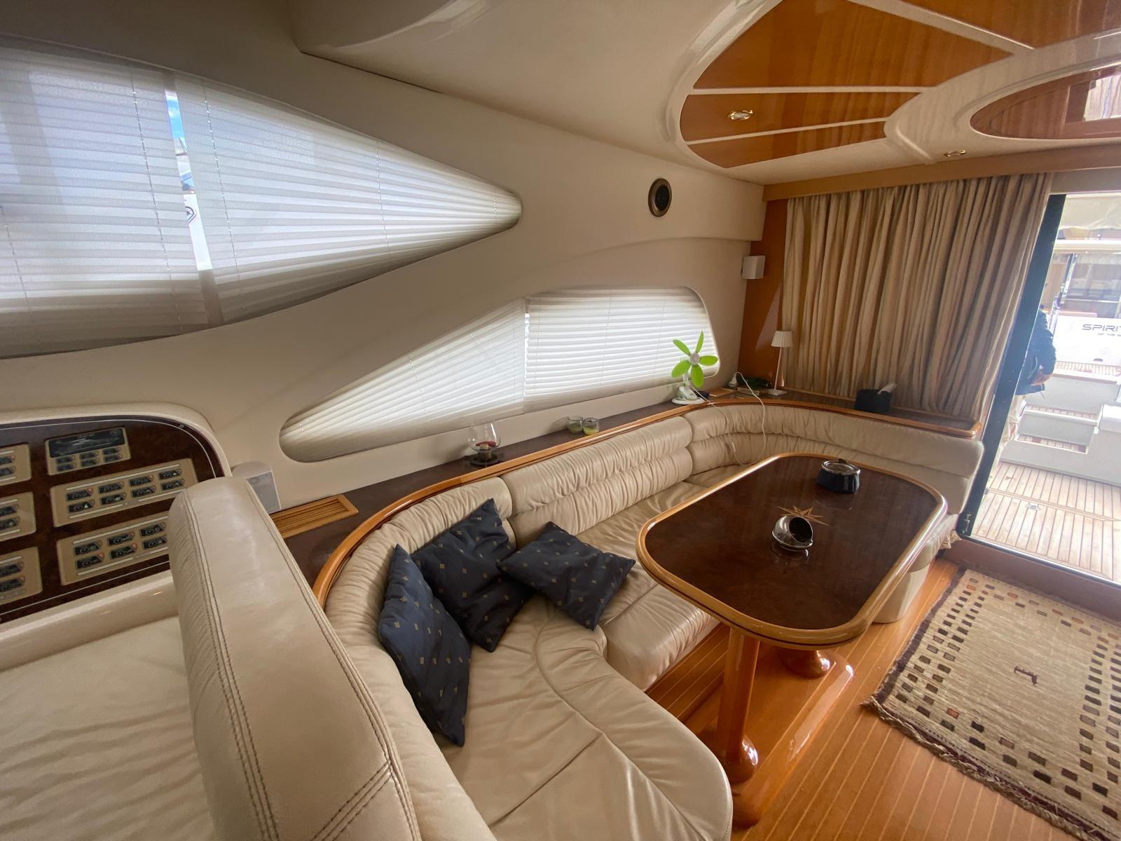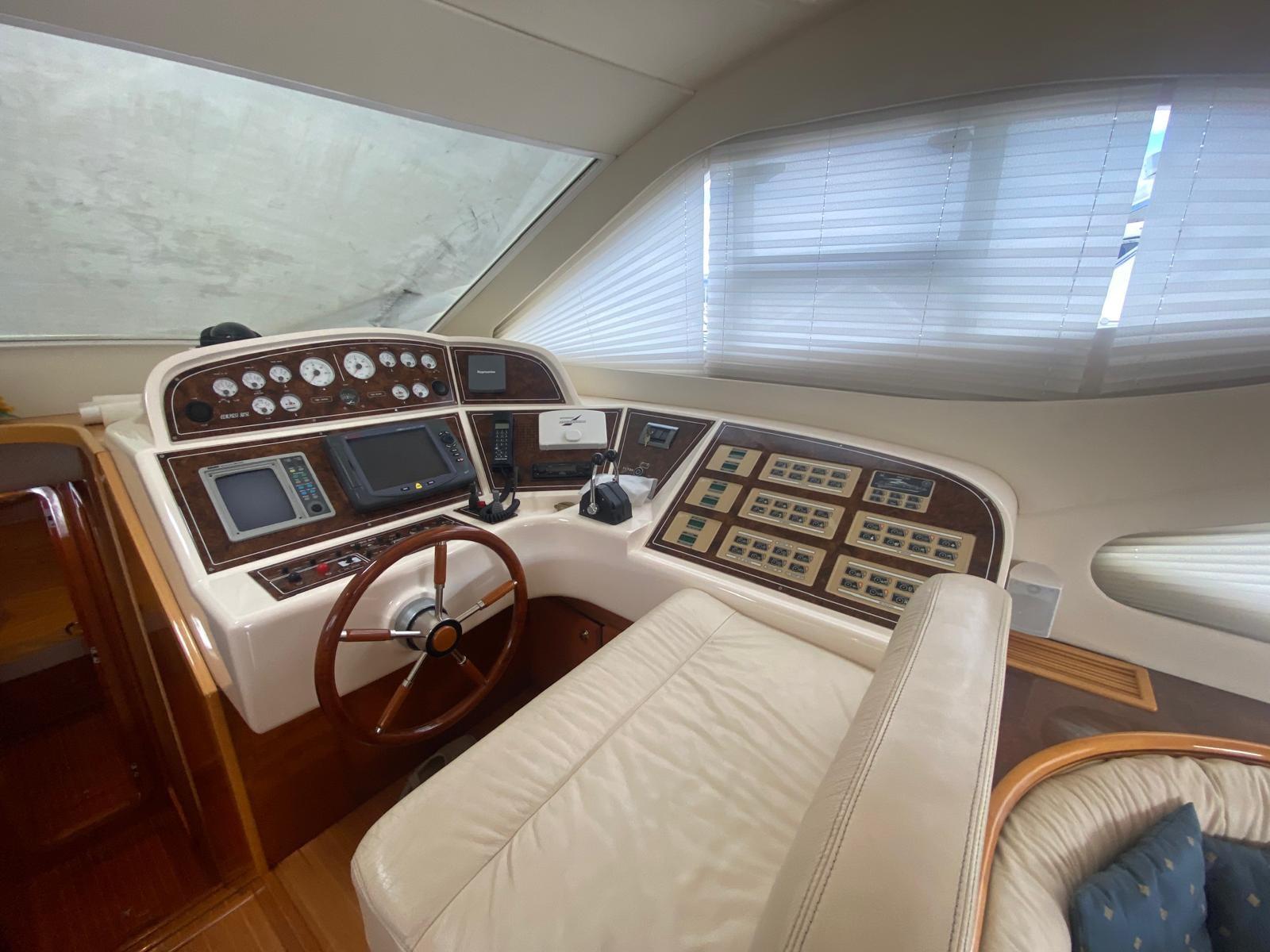 Alarme gaz, Alarme moteur, Alarme de pompe de cale, Eau sous pression, Douche de cockpit, Phare de poursuite, Flaps électriques, Extincteur(s) fixe(s), Indicateurs de flaps, Passerelle, Plateforme arrière, Pompe de cale automatique, Pompe de cale manuelle, Cockpit en teck, Prise de quai, Connexion eau sous pression à quai, Guindeau électrique, Echelle de bain, Selles pour Annexe, Annexe, Corne, Winch électrique arrière, Winch électrique avant.