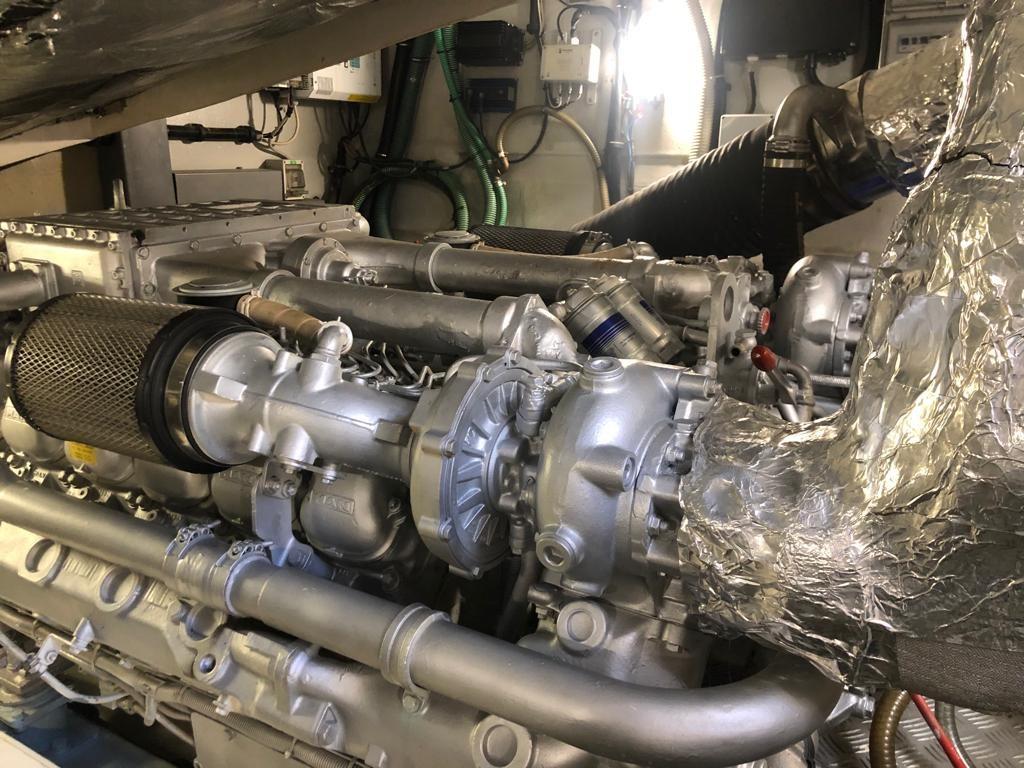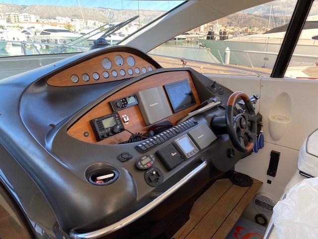 Alarme de pompe de cale, Eau sous pression, Passavant en teck, Couleur spéciale, Douche de cockpit, Phare de poursuite, Flaps hydrauliques, Hard top, Extincteur(s) fixe(s), Spots sous-marins, Plateforme arrière, Pompe de cale automatique, Cockpit en teck, Prise de quai, Guindeau électrique, Echelle de bain, table de cockpit, Winch électrique arrière.