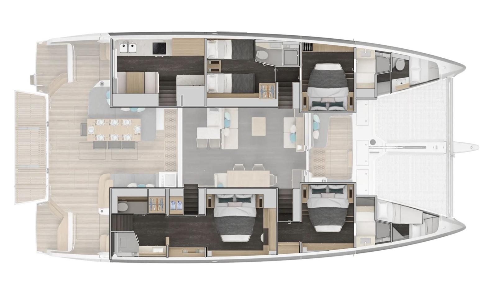 VERSION PROPRIÉTAIRE 4 CABINES AVEC CUISINE SÉPARÉE SOUS LE PONT