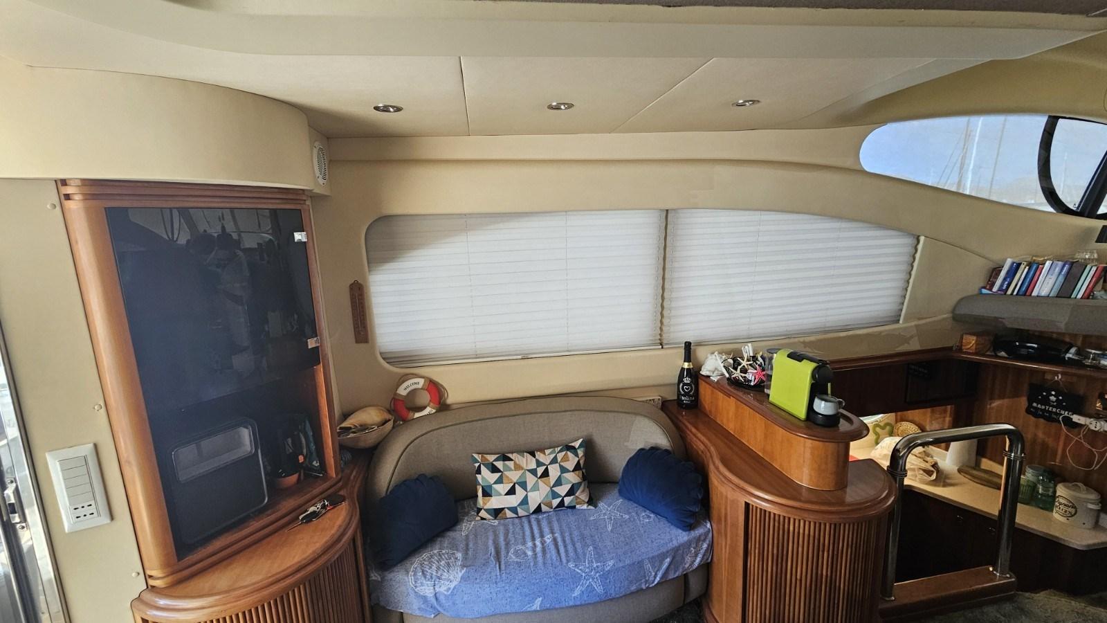 Travaux 2022 : cockpit en teck synthétique - nouvelle table de cockpit - nouvelles éponges de coussin - nouveaux auvents, capots d’été et d’hiver - nouveau canapé - nouvelle sellerie intérieure et moquette - remplacement de 3 téléviseurs - nouvelle plaque à induction - nouveau micro-ondes - installation d’une machine à glaçons - nouvelle chaîne stéréo - nouveau vol GPS/traceur et mouche VHF - remplacement des bagues d’essieu - nouvel échangeur gauche et échappement du moteur - coque à zéro - polissage complet.