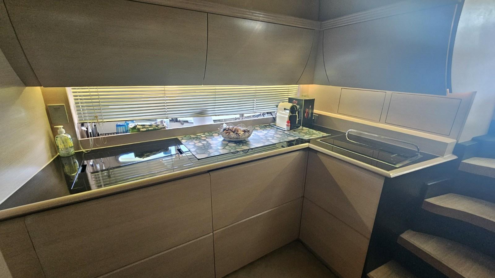 Groupe électrogène Kohler 8 kW - Climatisation Climma - propulseur d’étrave électrique - passerelle électro-hydraulique escamotable - auvent électrique à toit rigide - fenêtres latérales timonerie avec ouverture électrique accrue - bar dans le cockpit avec évier, plaque de cuisson électrique et réfrigérateur double - table de cockpit modifiée (plus grande surface) - plaque de cuisson électrique à 2 brûleurs - réfrigérateur - réfrigérateur/congélateur - table pliante dans la dînette - antenne TV numérique - TV LCD intelligente - Sony dolby surround - annexe avec hors-bord - Garage à annexe avec treuil électrique - Auvent sur le bain de soleil avant - Auvents de fermeture du cockpit.