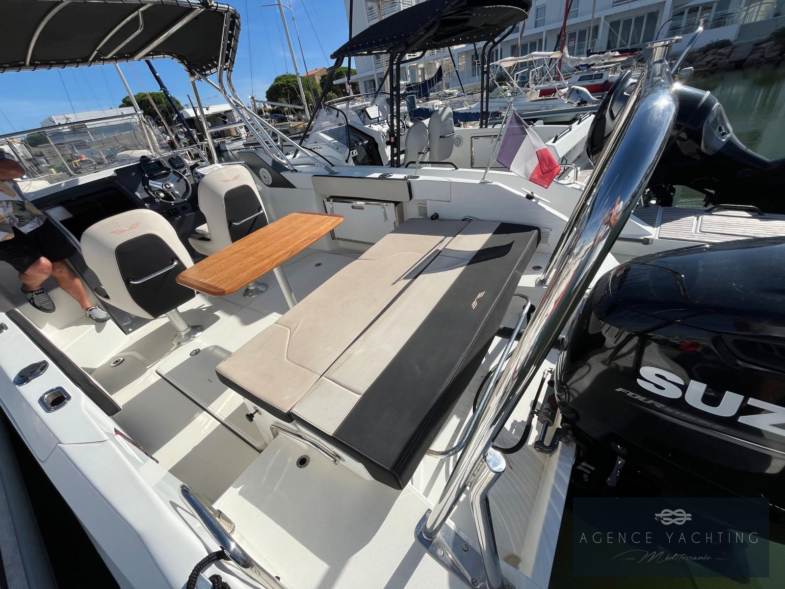 Superbe opportunité avec ce BENETEAU Flyer 7.7 SUNDECK de 2018 motorisé par un Suzuki 250 CV affichant seulement 267 heures, un ensemble parfaitement entretenu avec dossier factures complet et suivi rigoureux des entretiens. Ce bateau de plaisance allie sportivité, confort et polyvalence, idéal pour la navigation côtière, la pêche, les loisirs nautiques ou les sorties en famille. En 2023, un propulseur a été installé pour des manœuvres facilitées, renforçant le plaisir et la sécurité à bord. L’équipement haut de gamme comprend un guindeau électrique double commande, un élégant T-Top inox qui lui confère un look moderne et marin, ainsi qu’un mât de ski pour les amateurs de sports nautiques...