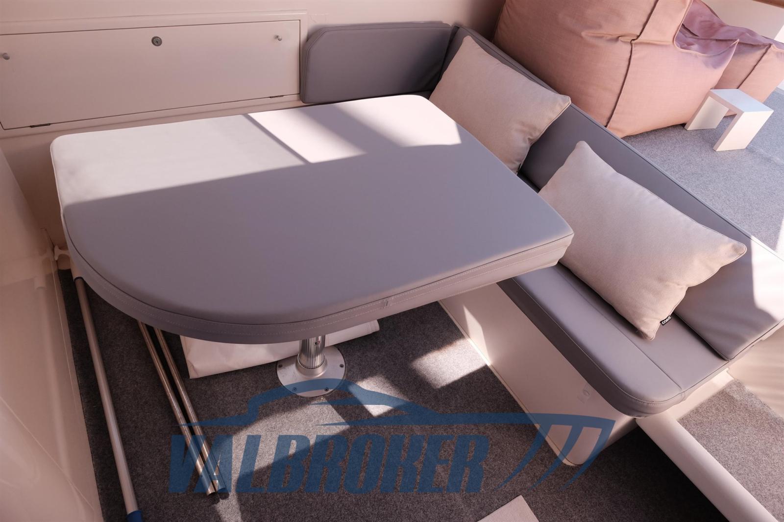 Eau sous pression, 4 Batteries, Douche de cockpit, Flaps hydrauliques, Plateforme arrière (allungata in vetroresina), Guindeau électrique, Echelle de bain, table de cockpit.