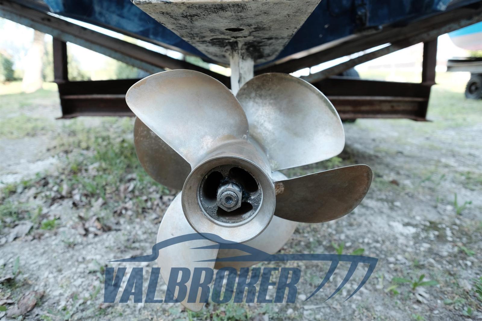 Visible à sec dans l’Adriatique. Motorisé 1x280 CV Volvo Penta 5.7 Gi DP/S. Travaux 2024 : emballage adhésif bleu, coussins extérieurs, auvent. Rehausseurs révisés en 2025.