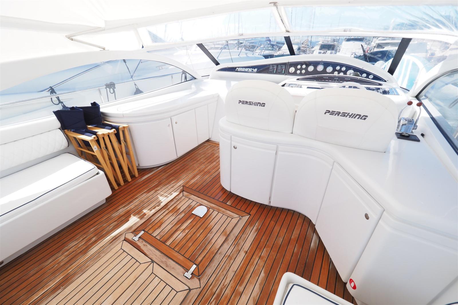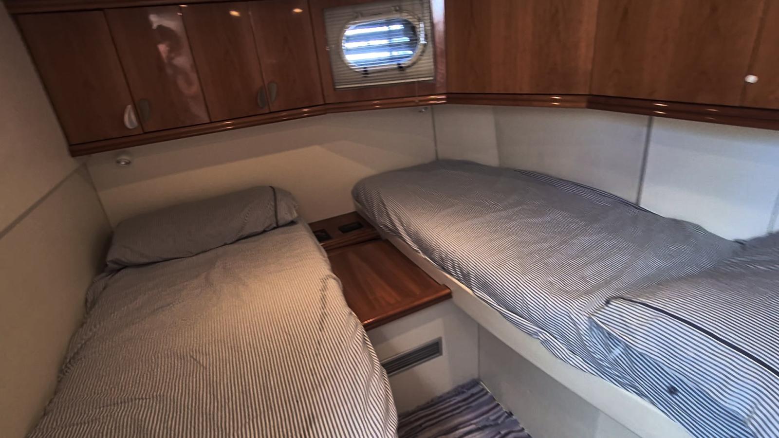 Excellentes conditions pour ce Pershing 45 (précurseur du 46), 2 cabines avec une intimité totale entre elles, toutes deux avec salle de bain privée avec douche, moteur homme de 610 cv dans la ligne d’arbre