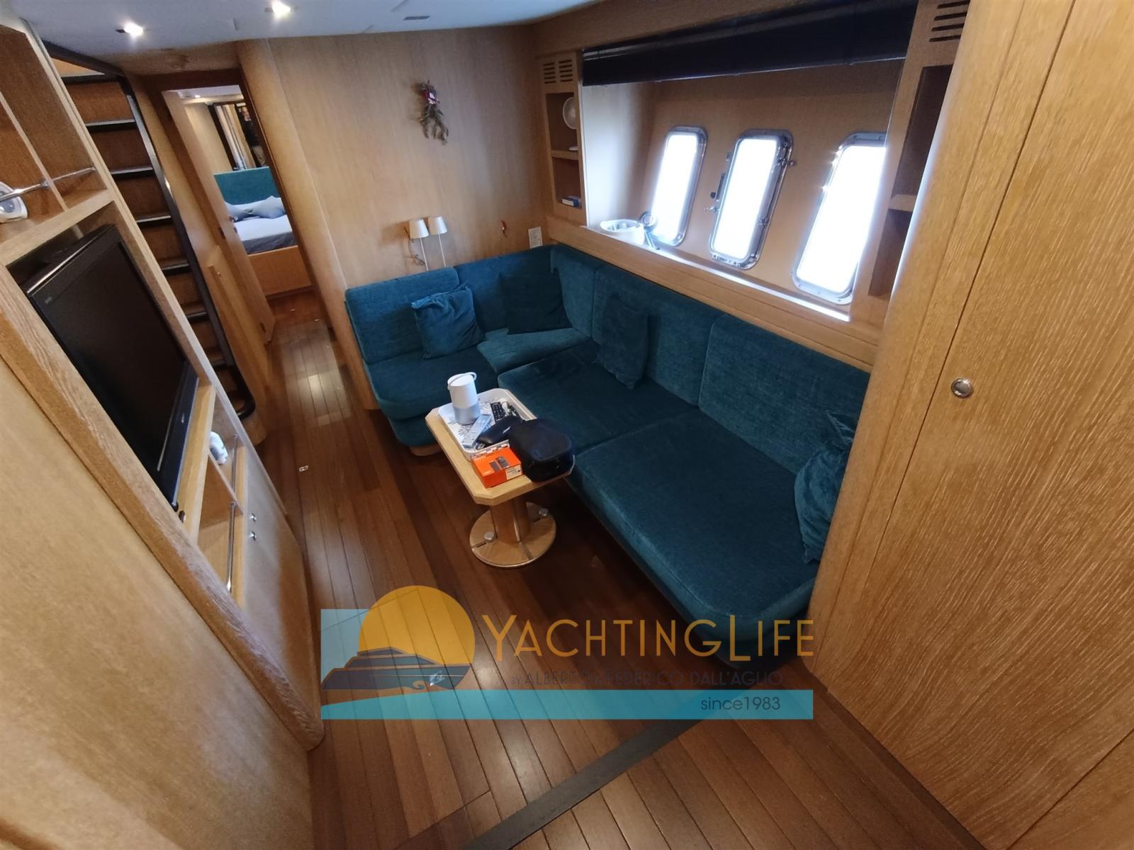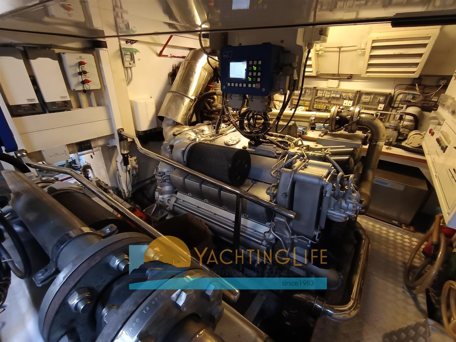Alarme moteur, Alarme de pompe de cale, Eau sous pression, 4 Chargeur de batterie (Nuovi), Douche de cockpit, Phare de poursuite, Flaps hydrauliques, Garage à annexe, Hard top, Extincteur(s) fixe(s), Indicateurs de flaps, Lavage de chaine, Lavabo dans le cockpit, Éclairage de courtoisie, Passerelle (Idrulica a scomparsa), Plateforme arrière, Pompe de cale automatique, Porte latérale, Cockpit en teck, Prise de quai, Guindeau électrique, Echelle de bain (Elettrica), table de cockpit, Filières avec sortie latèrale, Corne, Winch électrique arrière.