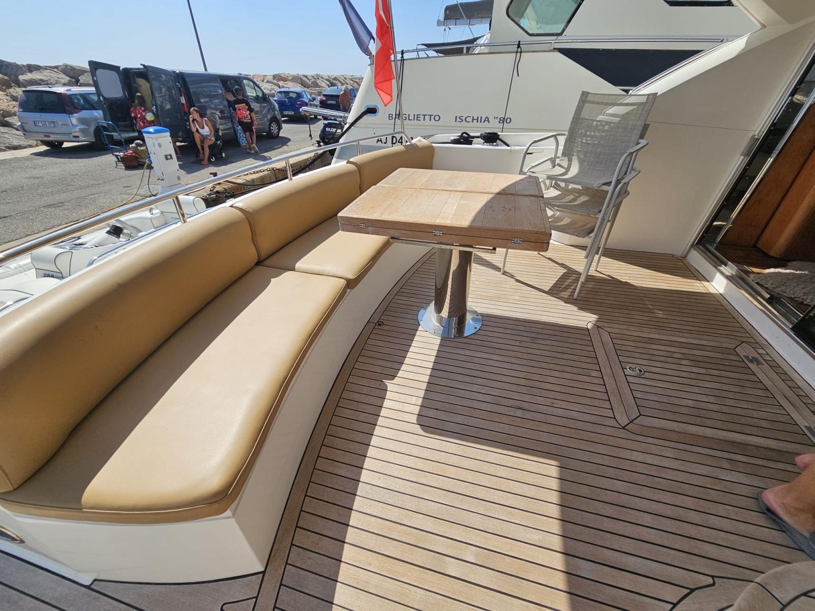 Alarme moteur, Eau sous pression, Douche de cockpit, Double barre à roue, Flaps hydrauliques, Passerelle, Plateforme arrière (affondabile), Pont en teck, Cockpit en teck, Prise de quai, Connexion eau sous pression à quai, Guindeau électrique, Echelle de bain, table de cockpit, Winch électrique arrière.