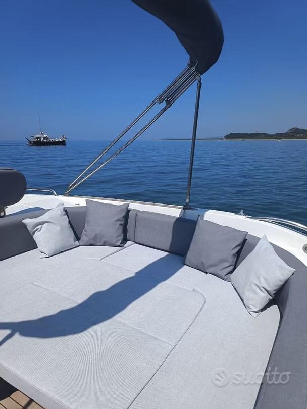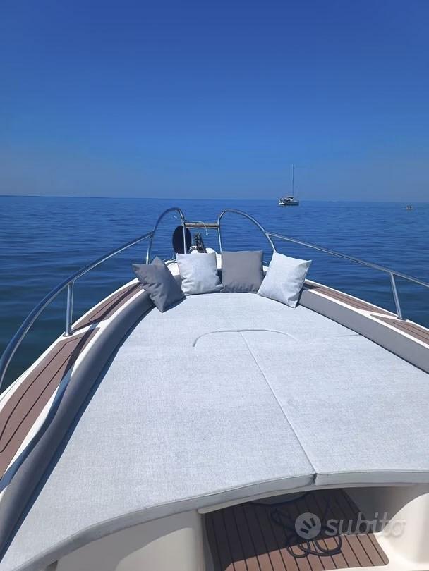 Tubulaires, teck, sellerie, auvent et timonerie, tout mai 2025, coque ramenée à zéro et entièrement refaite, annexe avec salle de bain, kitchenette, maintenue maniaquement égale aux nouveaux moteurs Suzuki, 250cv, 450 heures, pieds révisés et entretien complet, performances au top, consommation 45 litres par heure, total à 21 nœuds, propulseur d’étrave, GPS 10 pouces.