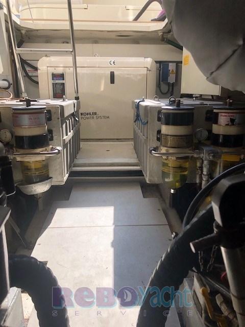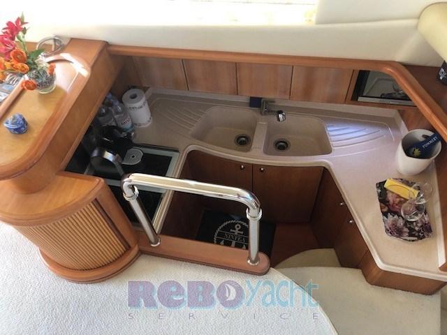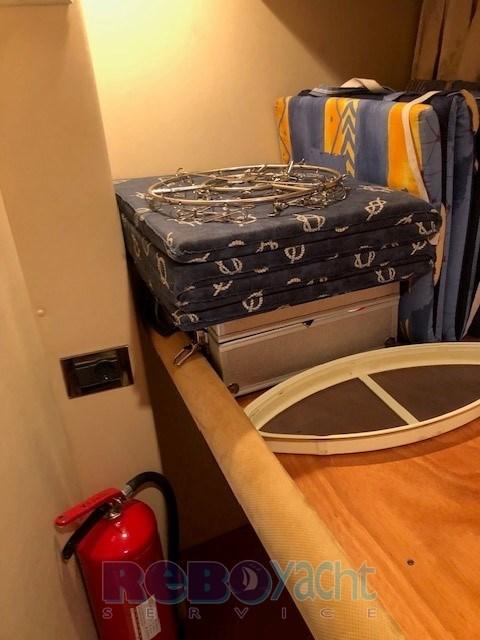 Eau sous pression, Douche de cockpit, Phare de poursuite, Flaps hydrauliques, Passerelle (idraulica), Plateforme arrière (allungata + teak), Cockpit en teck, Prise de quai, table de cockpit (con sedie).