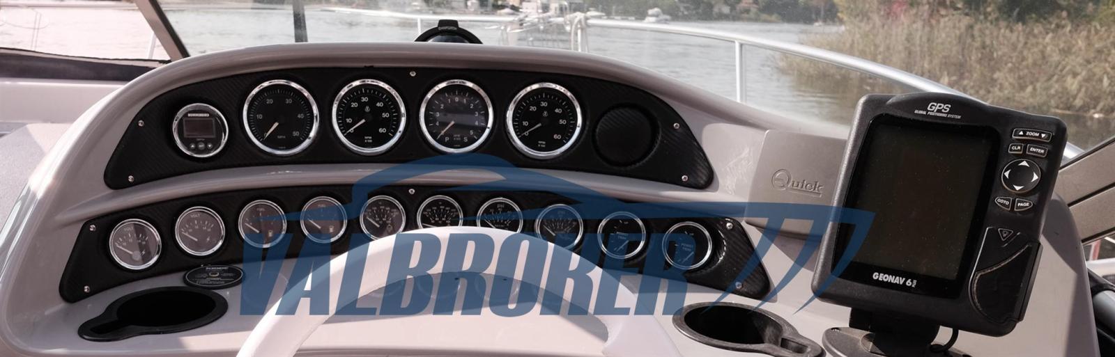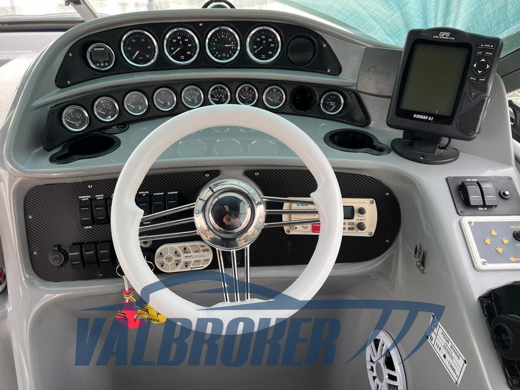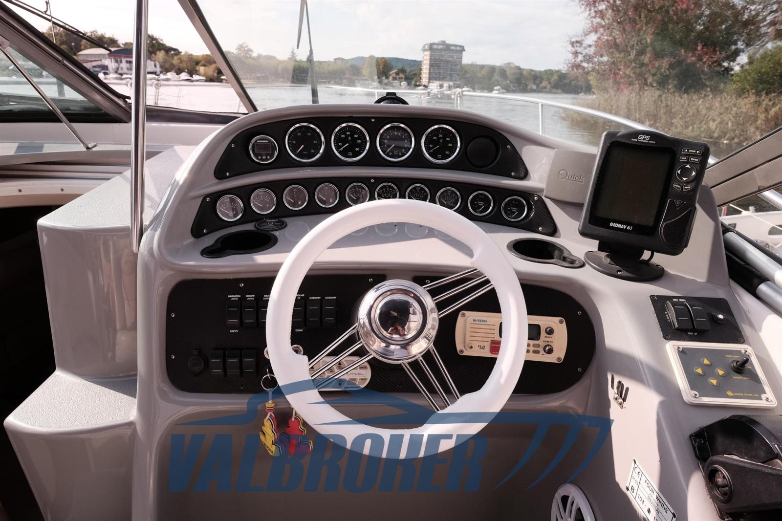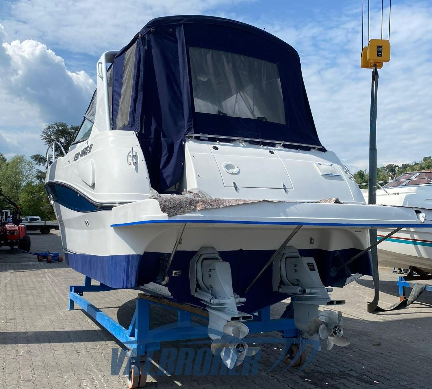 Chantier américain, Four Winns 298 Vista, visible sur le lac Majeur. Propulsé par 2X 270 Hp Volvo Penta 5.0 Gi V8 essence. Le bateau peut accueillir confortablement 4 personnes, avec double proue en V, cabine double à l’arrière, cuisine, salle de bain avec porte. Parfait pour les excursions d’une journée ou le camping nautique et les courtes croisières. Grand canapé dans le cockpit avec table qui peut être transformé en un bain de soleil confortable.
