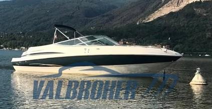 Chantier naval américain, Maxum Marine, année modèle 2001, propulsé par 1 X Mercruiser 350 MAG, V8 Essence, visible dans le hangar au bord du lac Majeur.