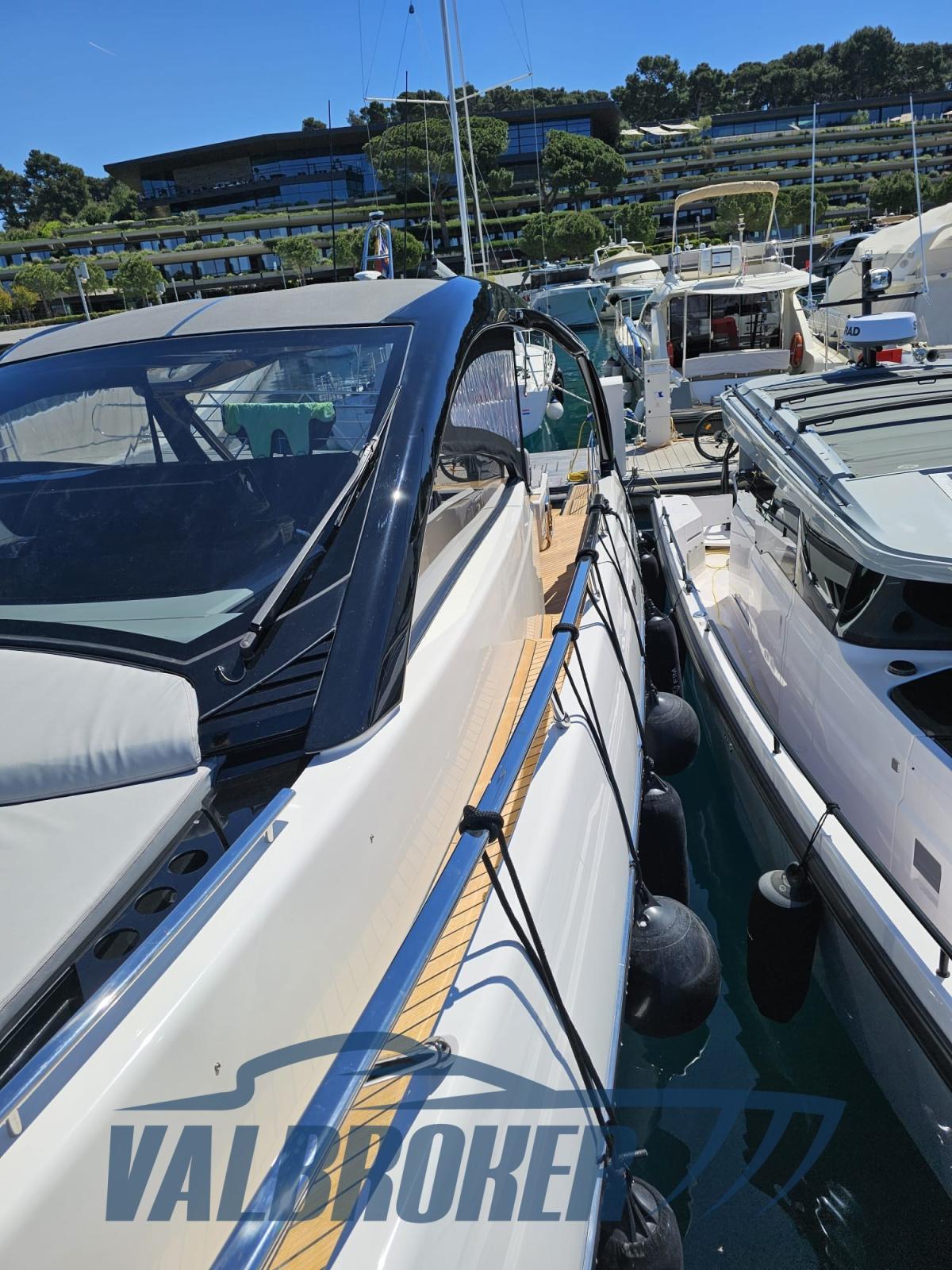 Eau sous pression, 10 Batteries, Passavant en teck, Douche de cockpit, Propulseur d'étrave (80 KGF Sleipner), Hard top (tettuccio apribile elettricamente con lamelle), Lavabo dans le cockpit, 4 Spots sous-marins, Passerelle (idraulica a scomparsa), Plateforme arrière (teak, tender-lift 500 kg), Cockpit en teck, Guindeau électrique, table de cockpit (teak abbattibile), Table pliante de salon, Corne.