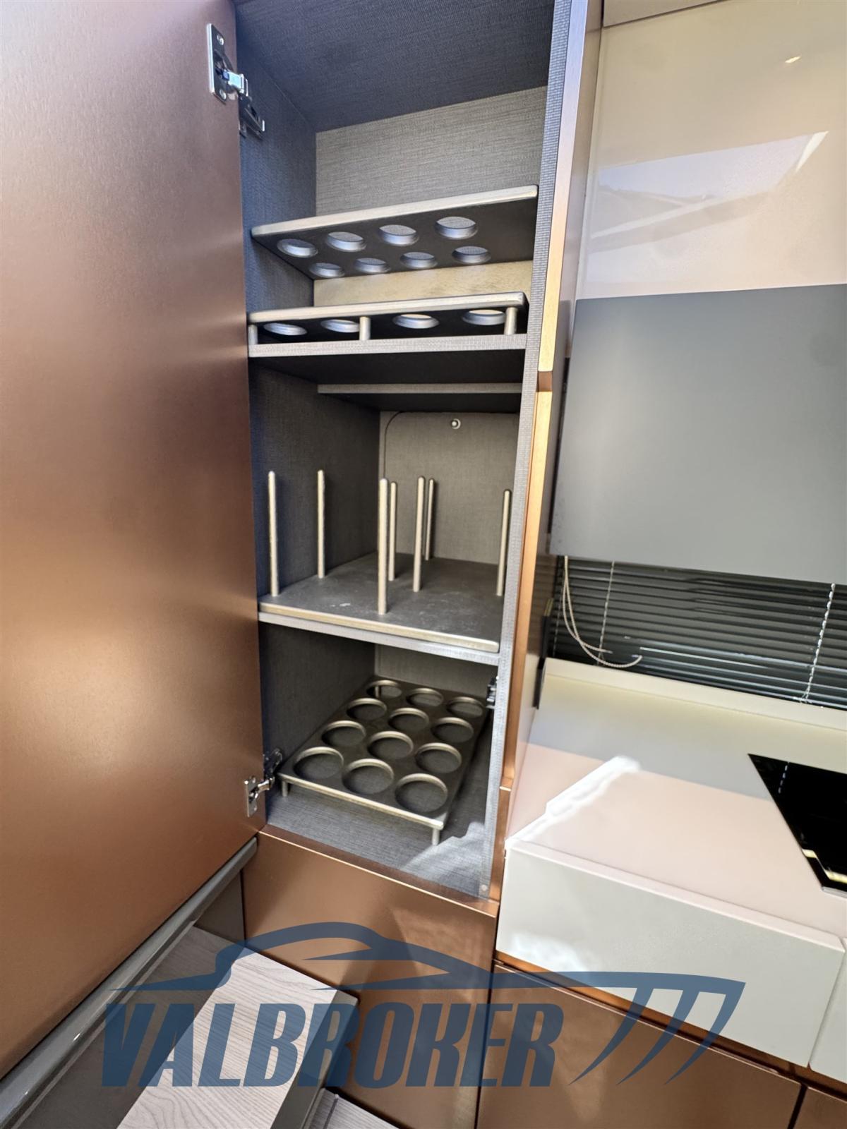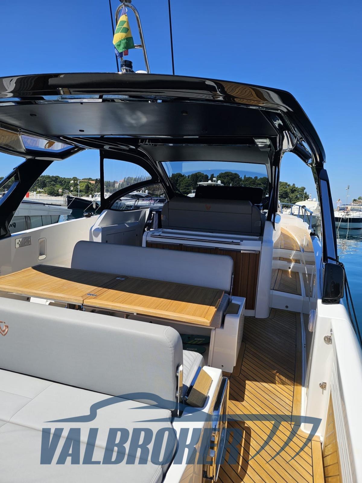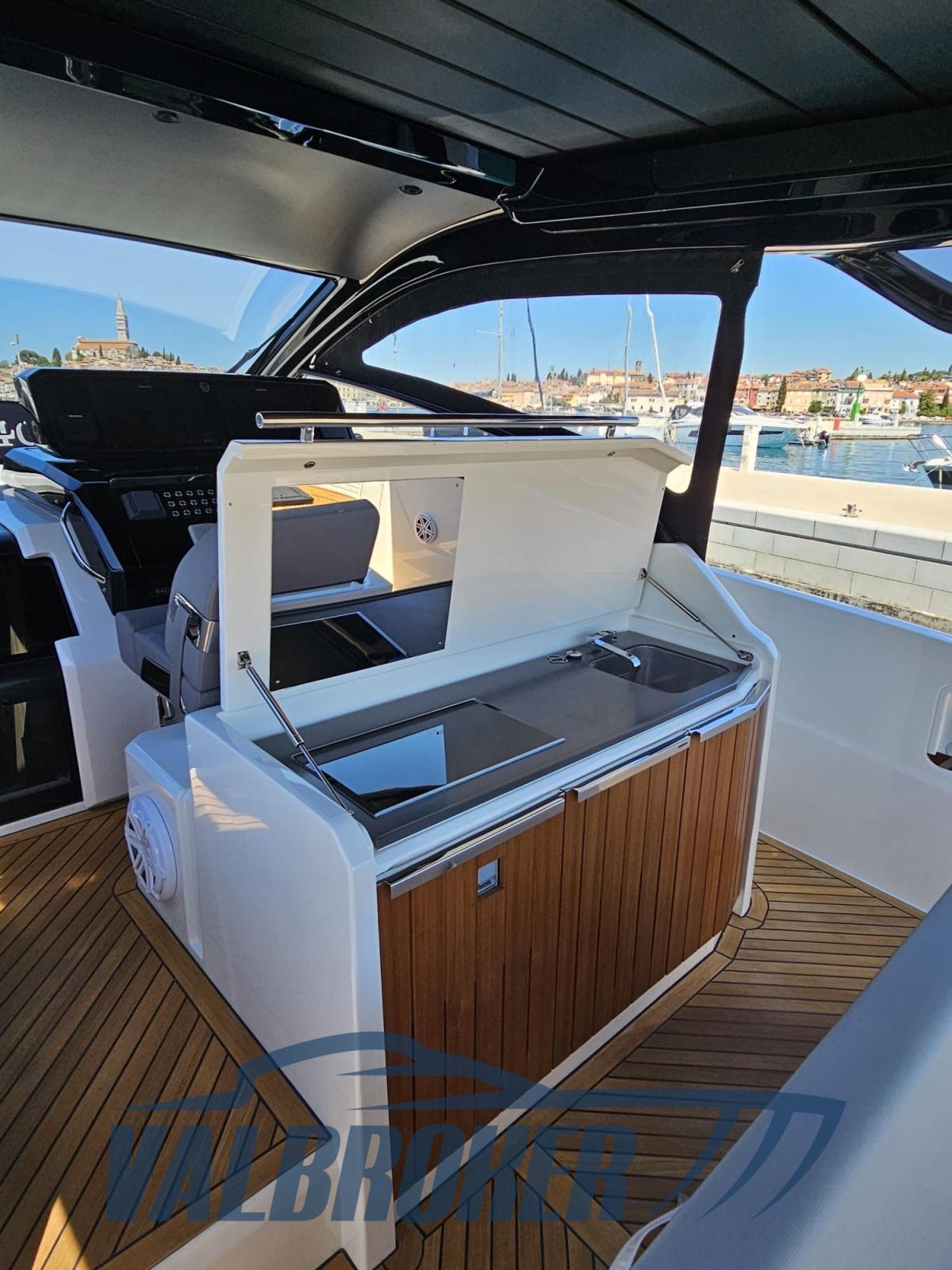 Des lignes captivantes combinées à un grand pare-brise et à une excellente circulation de l’air dans le cockpit grâce au Hard Top avec ouverture à lamelles. Il offre une grande cabine propriétaire arrière pleine largeur, une élégante dînette à l’avant, transformable électriquement en véritable seconde cabine et deux salles de bains. Les intérieurs sont modernes avec des matériaux luxueux et raffinés. À l’extérieur, l’élégance du design se marie parfaitement avec l’esprit sportif de ce nouveau modèle 100 % Made in Italy.