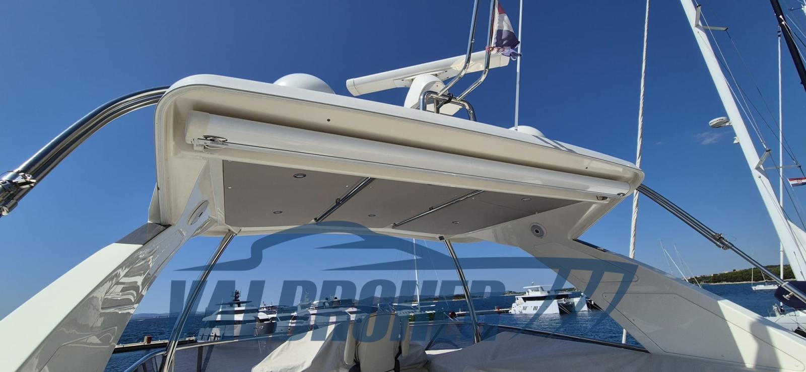 Ancre (inox 45kg), Eau sous pression, Passavant en teck, Douche de cockpit, Propulseur d'étrave (Quick doppio comando), Hard top (vetroresina), Éclairage de courtoisie, Spots sous-marins, Panneau solaire, Passerelle (elettro-idraulica Besenzoni teak), Plateforme arrière (teak, tender-lift 400kg), Porte latérale, Porte latérale, Cockpit en teck, Prise de quai, Stabilisateurs (Seakeeper 9 Gyro), table de cockpit (teak), Winch électrique arrière.