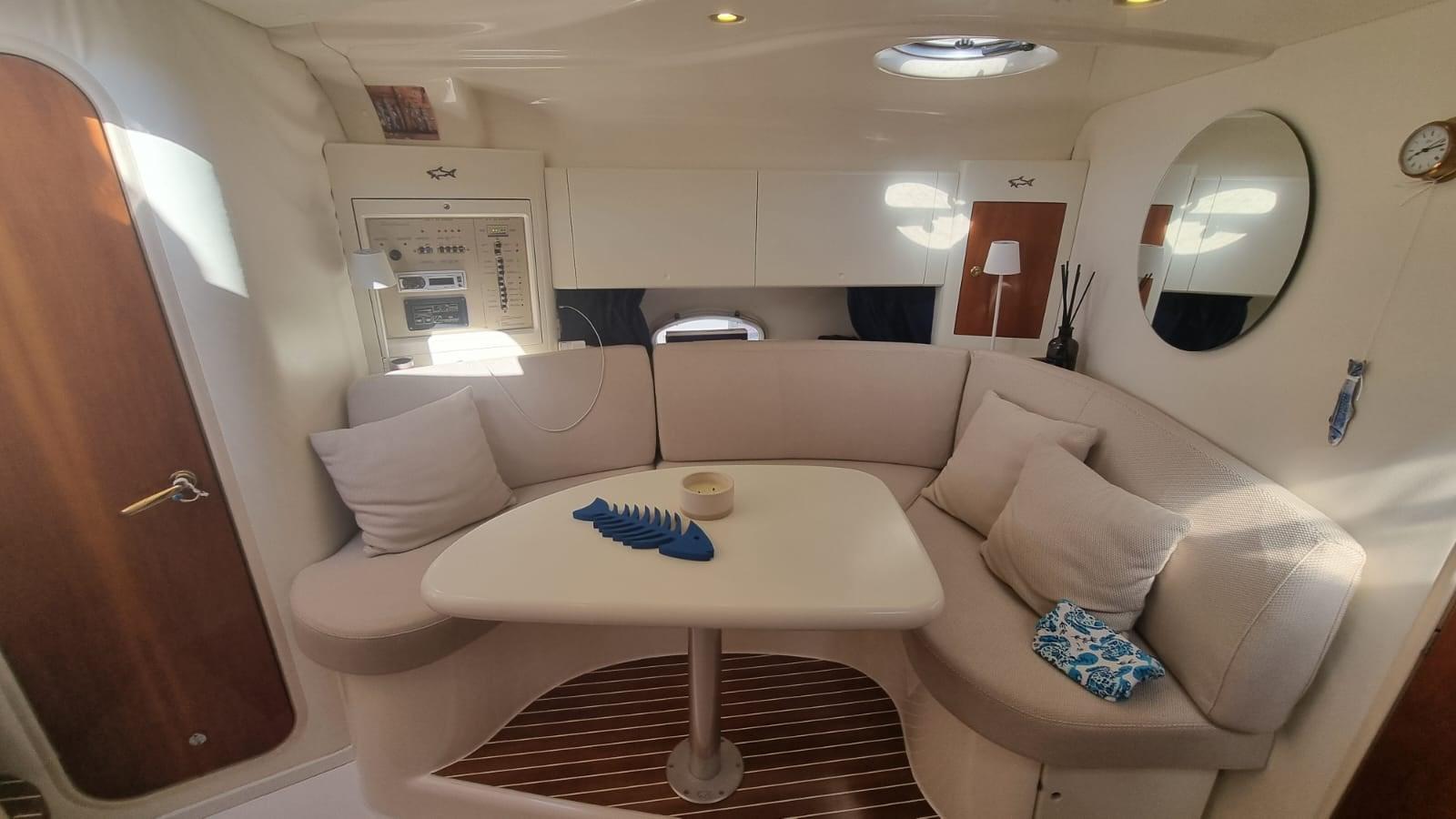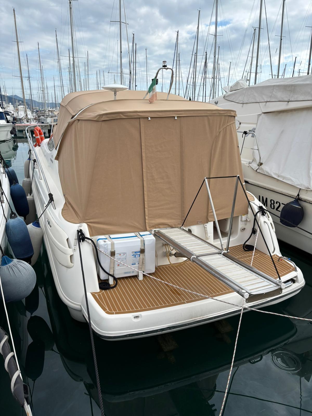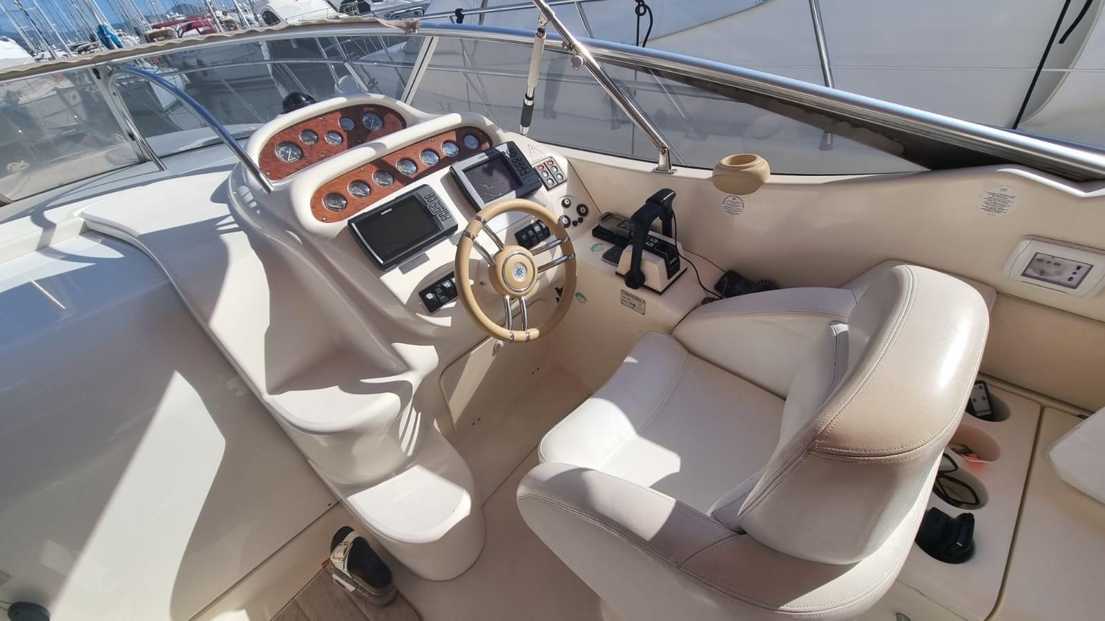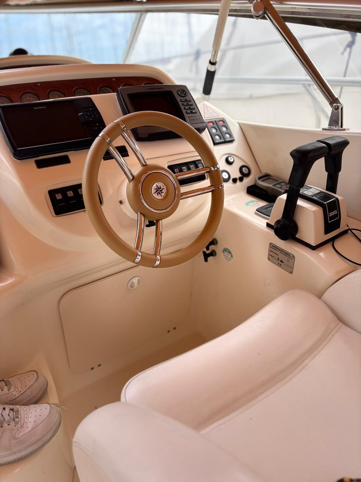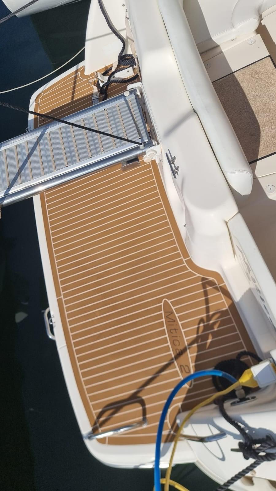 Alarme moteur, Alarme de pompe de cale, Alternateur, Eau sous pression, 4 Batteries (nuove 2025 2 servizi , 1 gruppo , 1 motori), Chargeur de batterie (2025), Câble d’alimentation à quai, Douche de cockpit, Flaps hydrauliques, Indicateurs de flaps, Éclairage de courtoisie, Passerelle (Besenzoni con telecomano nuovo 2025 e revisione totale), Plateforme arrière, Porte latérale, Prise de quai, Connexion eau sous pression à quai, Onduleur, Rollbar, Guindeau électrique, Echelle de bain, table de cockpit (in teak abbattibile per formare prendisole con cuscino nuovo 2024), Corne.