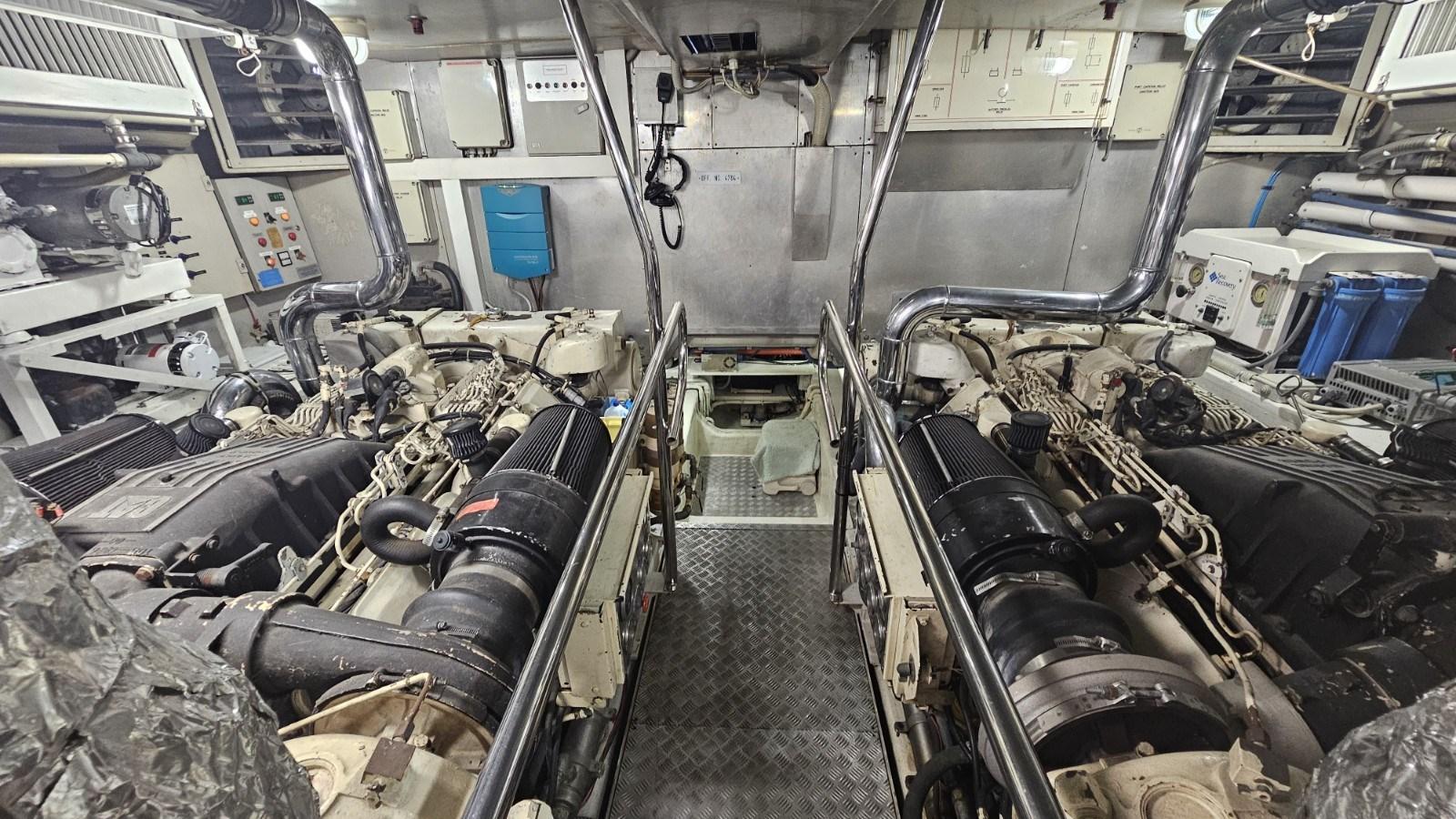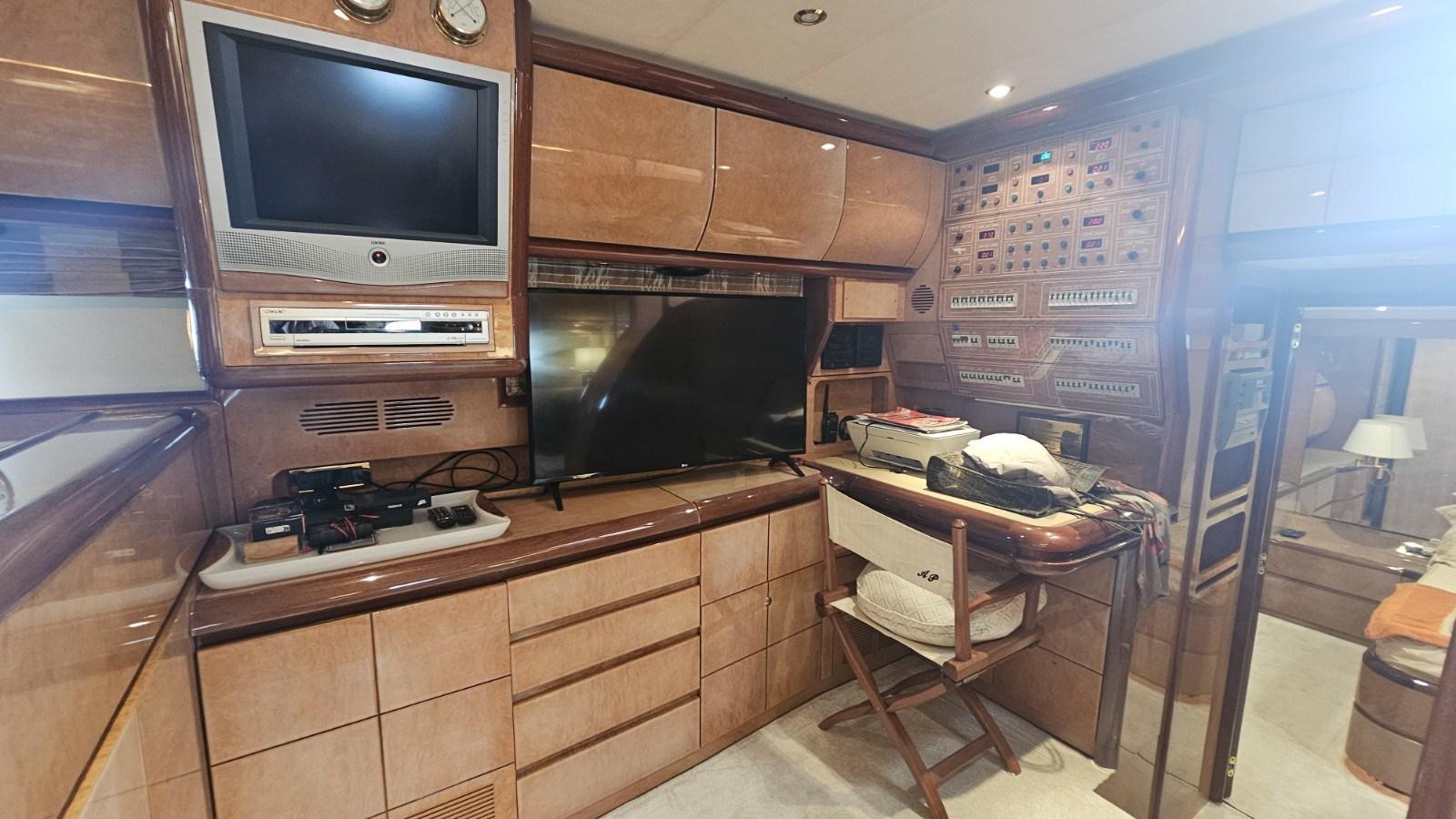 Climatisation Condaria - 2 groupes électrogènes Kohler de 15 kW - passerelle électro-hydraulique escamotable - garage à annexe arrière - annexe avec hors-bord - propulseur d’étrave hydraulique - antenne TV satellite - TV LCD - dessalinisateur - meuble bar de cockpit avec évier et réfrigérateur - réfrigérateur - congélateur - plaque de cuisson électrique 4 brûleurs - lave-vaisselle - chaîne stéréo - machine à glaçons - compresseur d’air.