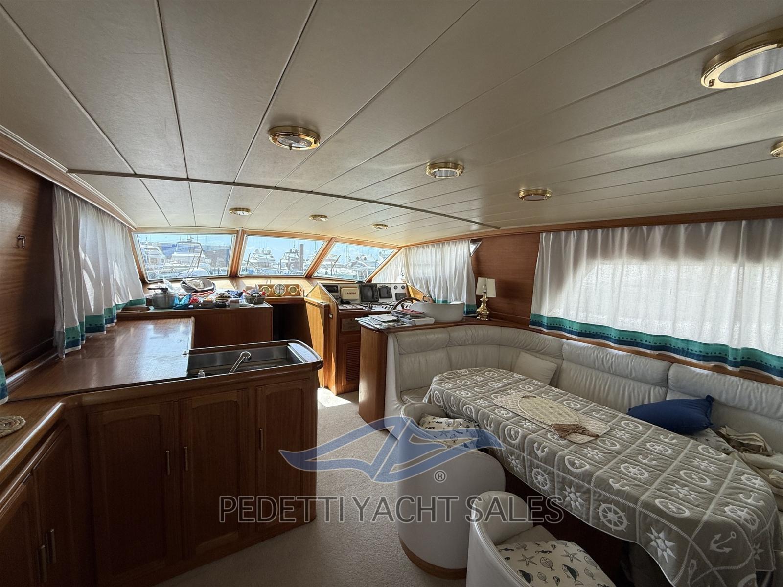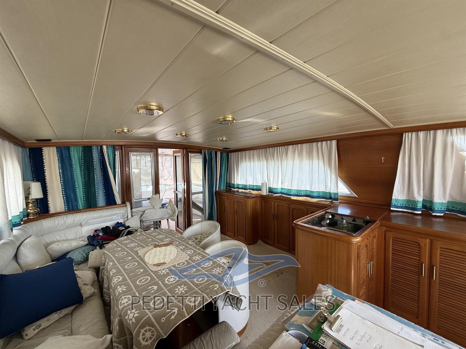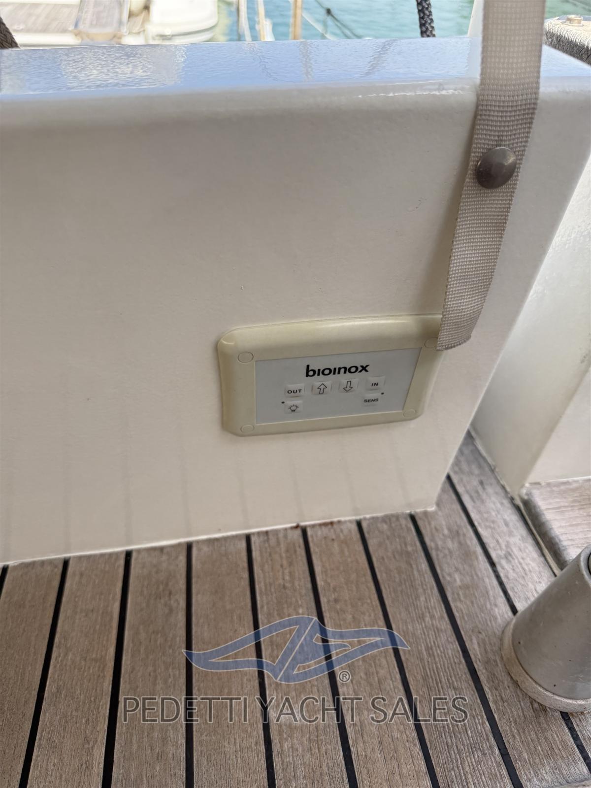 Alarme gaz, Alarme moteur, Alarme de pompe de cale, Système de vidange, Passavant en teck, Câble d’alimentation à quai, Filères, Douche de cockpit, Double barre à roue, Flaps hydrauliques, Bossoirs pour annexe, Extincteur(s) fixe(s), Indicateurs de flaps, Éclairage de courtoisie, Défenses, Passerelle, Pompe de cale automatique, Pompe de cale manuelle, Pont en teck, Porte latérale, Cockpit en teck, Prise de quai, Connexion eau sous pression à quai, Répétiteur électronique, Guindeau électrique, Echelle de coupée, Echelle de bain, table de cockpit, Table pliante de salon, Corne, Pont en teck, Winch électrique arrière, Winch électrique avant.