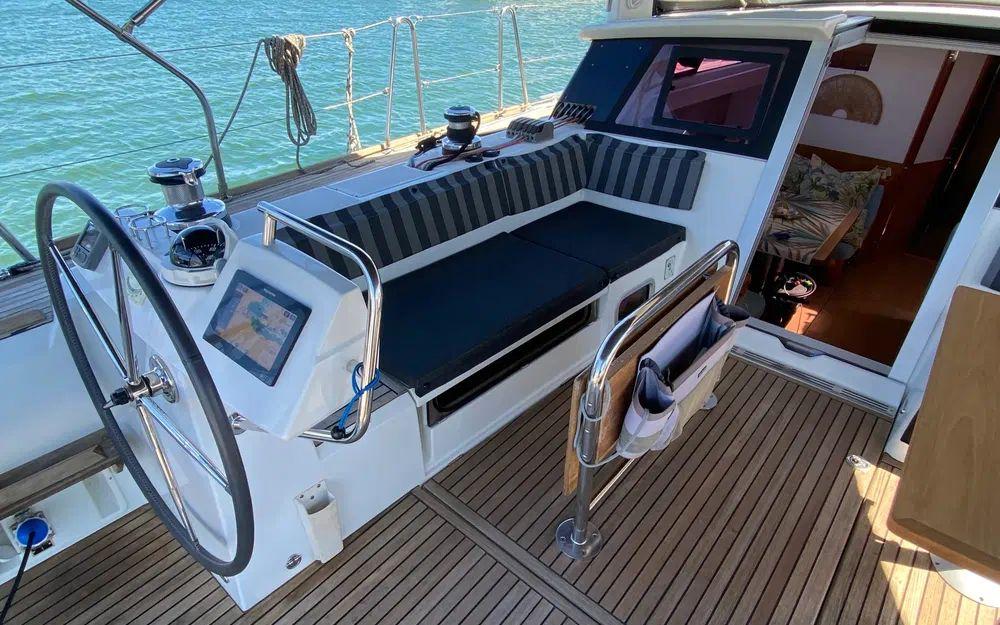 Groupe, panneaux solaire, convertisseur, dessalinisateur, électronique récente, voiles neuves, grand voile sur enrouleur, joystick de manoeuvre, joint de saildrive de 2025. Un bateau véritablement prêt à partir permettant une totale autonomie! À la manoeuvre, sous voile ou encore au mouillage.