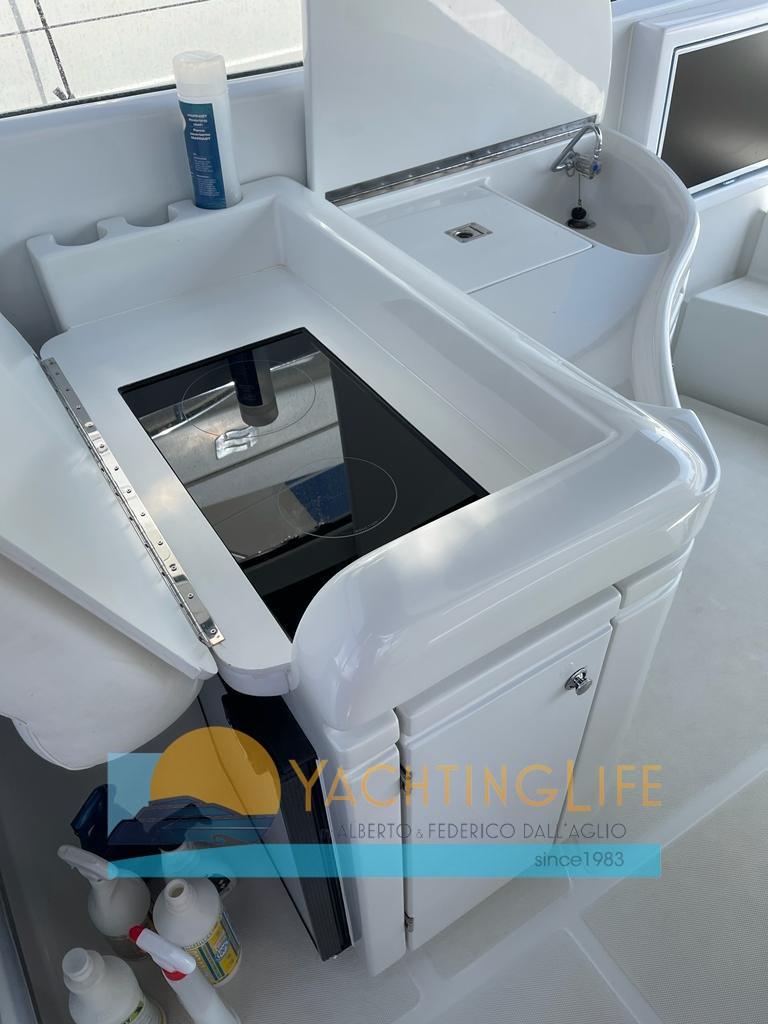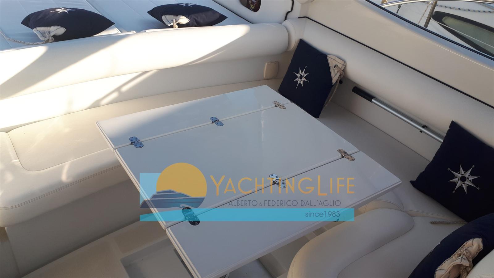 Alarme moteur, Alarme de pompe de cale, Eau sous pression, Douche de cockpit, Flaps électriques, Indicateurs de flaps, Éclairage de courtoisie, Passerelle (a scomparsa), Plateforme arrière, Pompe de cale automatique, Prise de quai, Rollbar, Guindeau électrique, Echelle de bain, table de cockpit (elettrico), Corne.