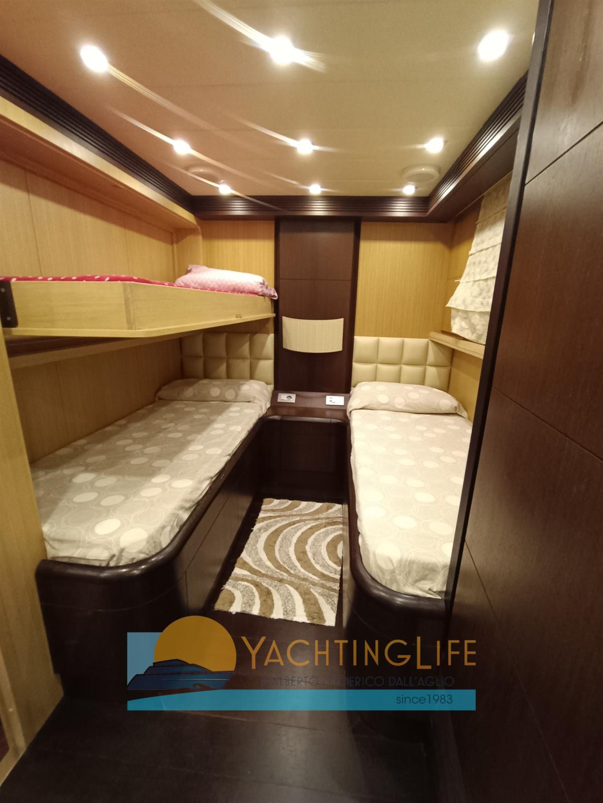 Propriétaire unique - Vraiment excellent état - Version Hard Top - Aménagement avec 3 doubles et un triple, chacun avec salle de bain, toilettes de jour, 2 cabines d’équipage chacune avec une salle de bain (capitaine simple à l’arrière, équipage double à l’avant)- Stabilisateurs Mitsubishi Zero Speed - Electronique de navigation Raymarine remplacée 2017 - Bateau de plaisance de moins de 24mt. - Jacuzzi à la volée - Caméra thermique Flir pour la navigation de nuit - Intérieurs en chêne blanchi et wengé - Climatisation accrue dans le salon et également dans la salle des machines - Échappements avec isolation en céramique - Cuisine avec serrure électrique