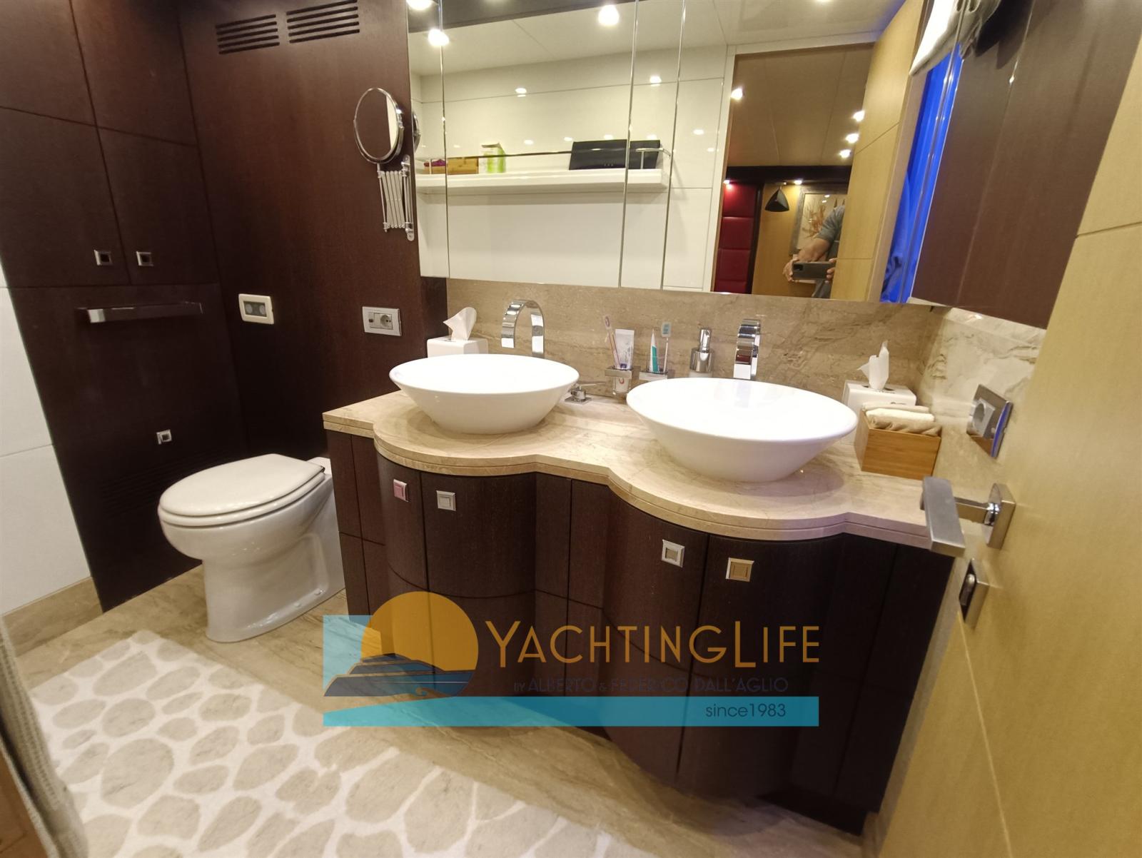 Alarme intrusion, BBQ/ Grill, Ballon d'eau chaude, Coffre-fort, Air Conditionné (Maggiorato), Connexion à internet, Contrôleur domotique, Dessalinisateur (360 LT/H Idromar), Cuve à eaux noires, Plancher intérieur en bois (Wenge), Prises interieures 220v, Réservoir d'eau noire, 4 Caméra vidéo, 7 Toilettes électriques.