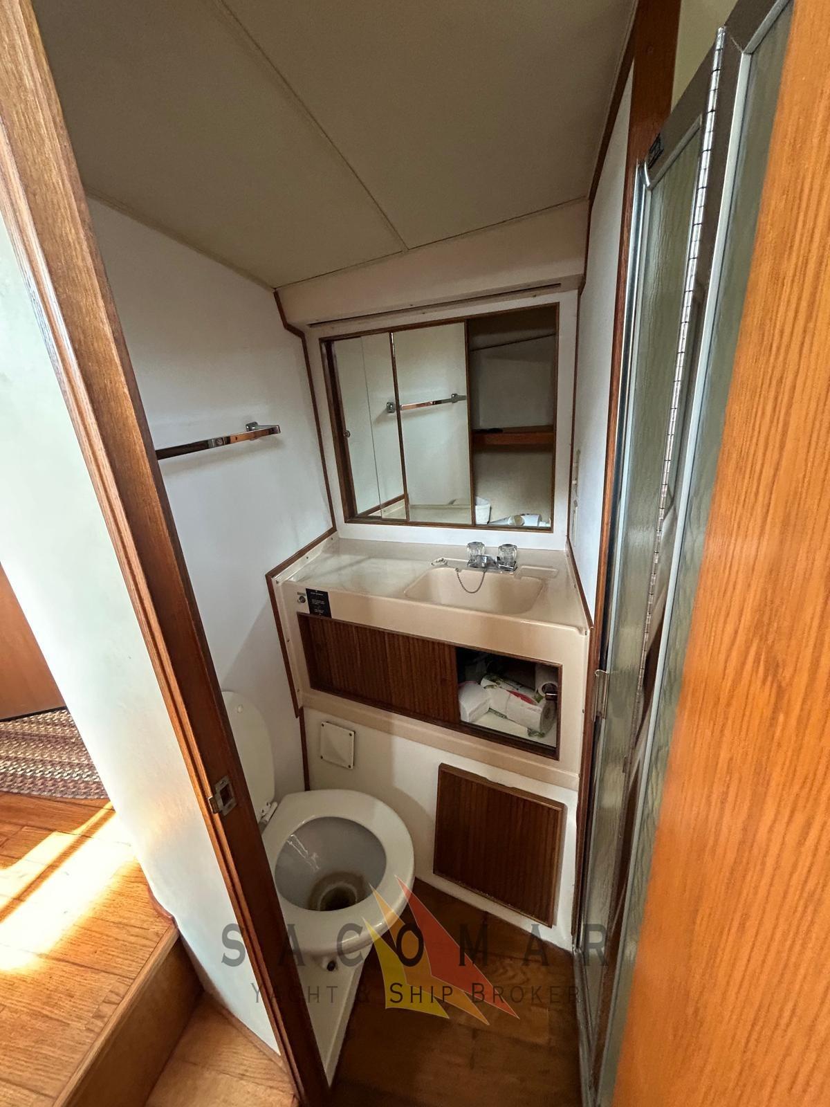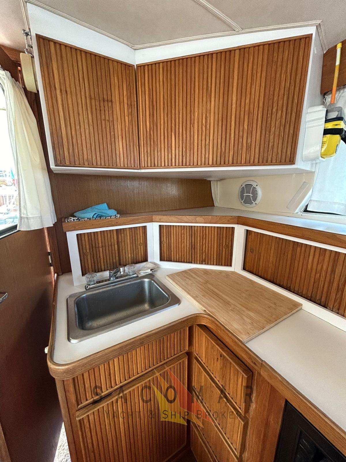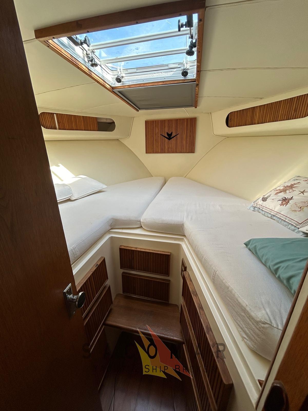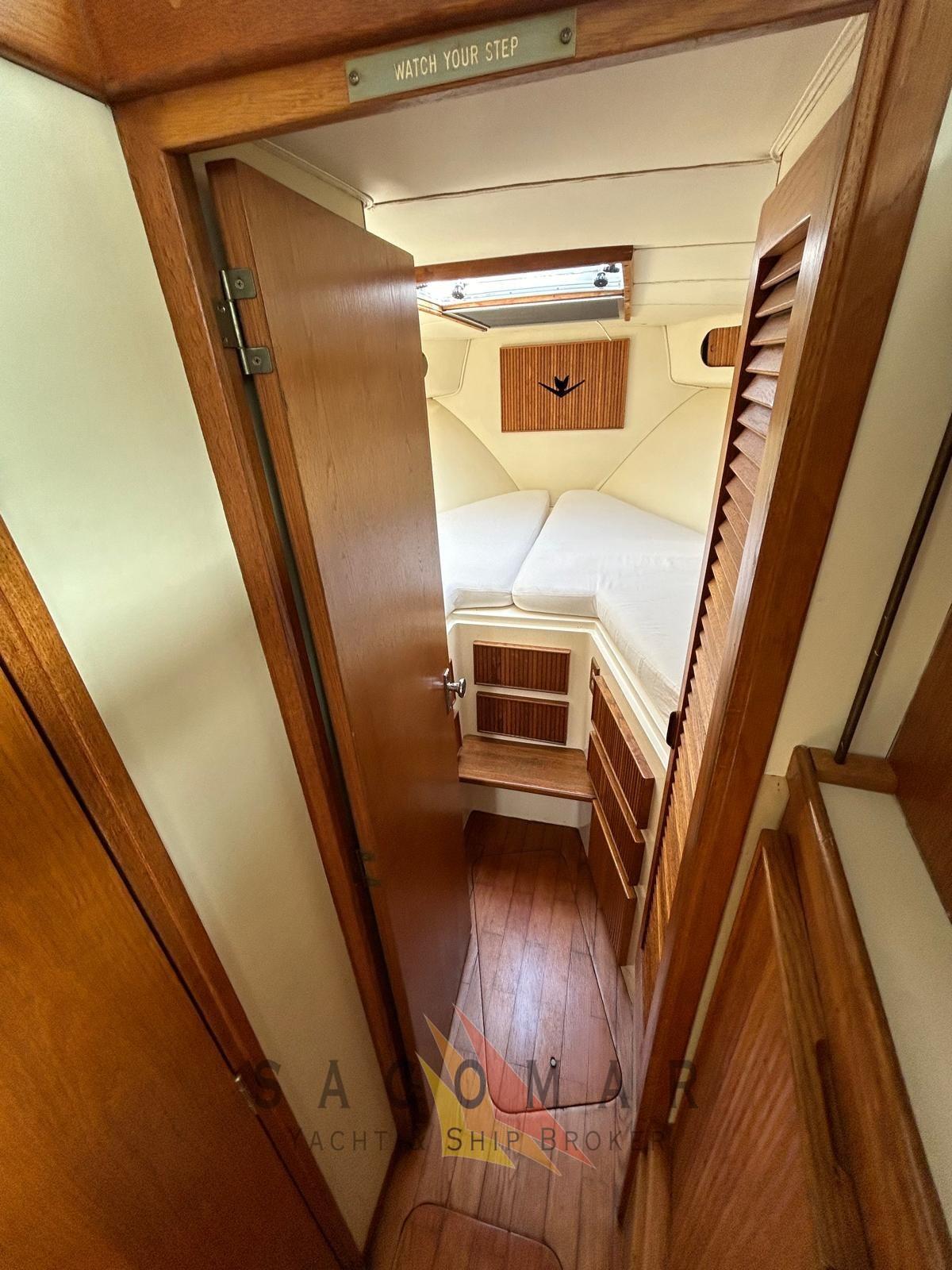 Volets, plate-forme arrière, intérieur en bois, cabine de douche, treuil électrique, prises de pêche à fond profond, filtres Racor