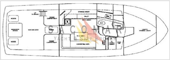Compas (magnetica Ritchie Powerdamp), 2 Sondeur pêche (Koden CVS8841 - interno. Furuno FCV585 - fly), GPS (Chartanavionis Geonav 7C - esterno), Pilote automatique (Robertson Simrad AP20 - fly), 2 Radio VHF (Sailor Compact RT2047 - interno. ICOM ICN421 - fly).