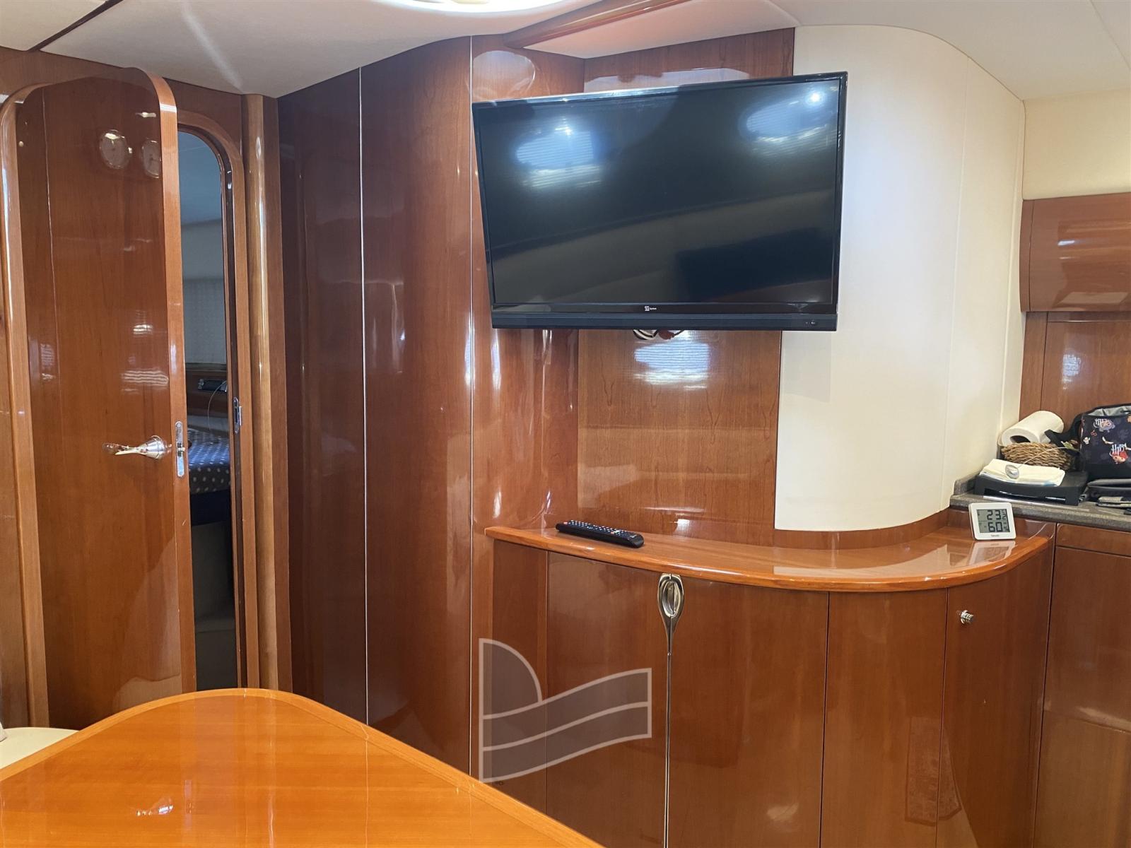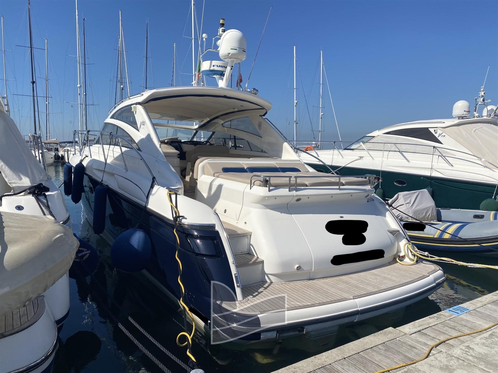 Alarme moteur, Eau sous pression, Couleur spéciale (Blue Navy), Douche de cockpit, 2 Flaps hydrauliques, Hard top, Extincteur(s) fixe(s), Lavabo dans le cockpit, Passerelle, Plateforme arrière (di poppa in teak), Porte latérale, Cockpit en teck, Prise de quai, Connexion eau sous pression à quai, Guindeau électrique, Echelle de bain, table de cockpit, Corne.
