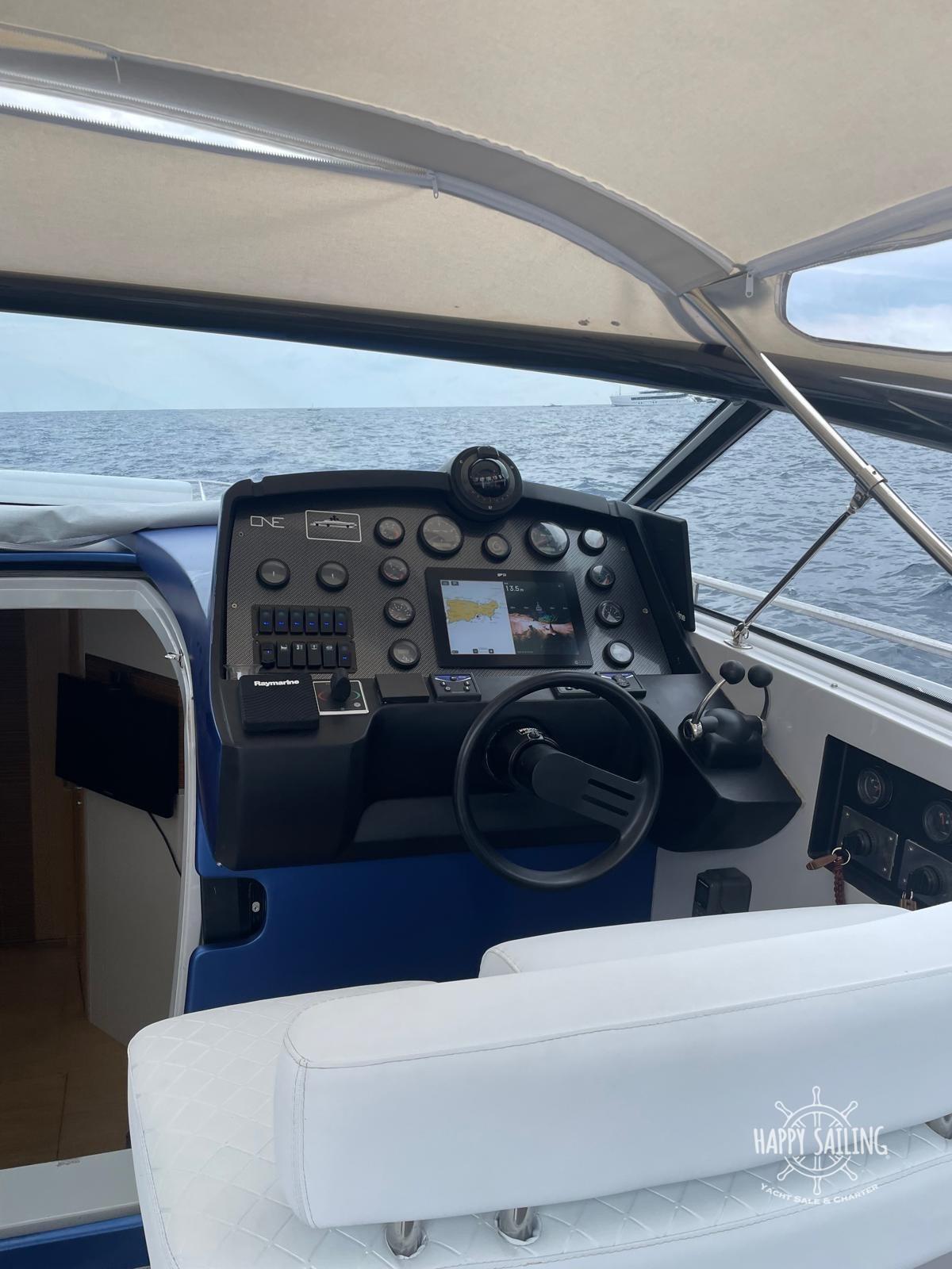 Eau sous pression, Couleur spéciale (wrapping blu), Douche de cockpit, Flaps électriques, Éclairage de courtoisie, Plateforme arrière, Prise de quai, Guindeau électrique, table de cockpit.