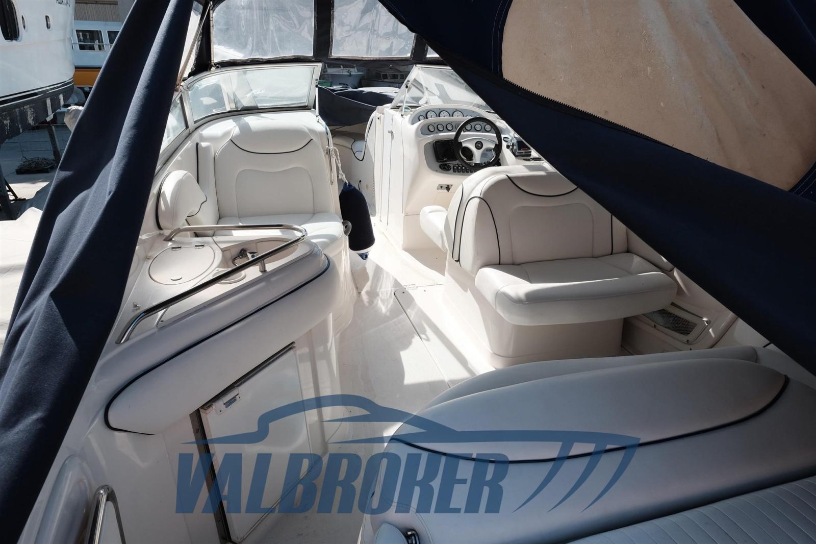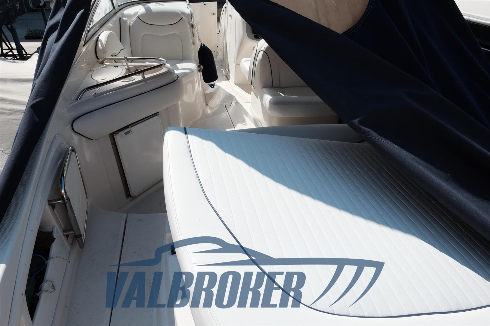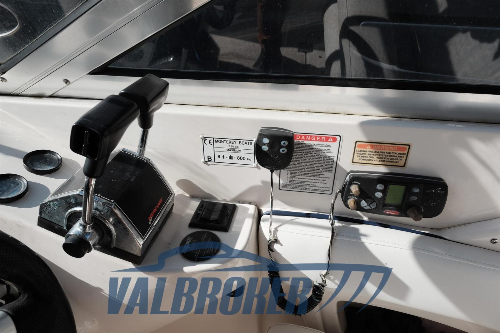 Grand cavalier d’étrave du célèbre chantier naval américain Monterey. Propulsé par un moteur essence 2xV8 350 MAG MPI Mercruiser avec seulement 350 heures de conduite ! Les moteurs ont été déchargés et remanufacturés, l’entretien effectué régulièrement (factures disponibles).