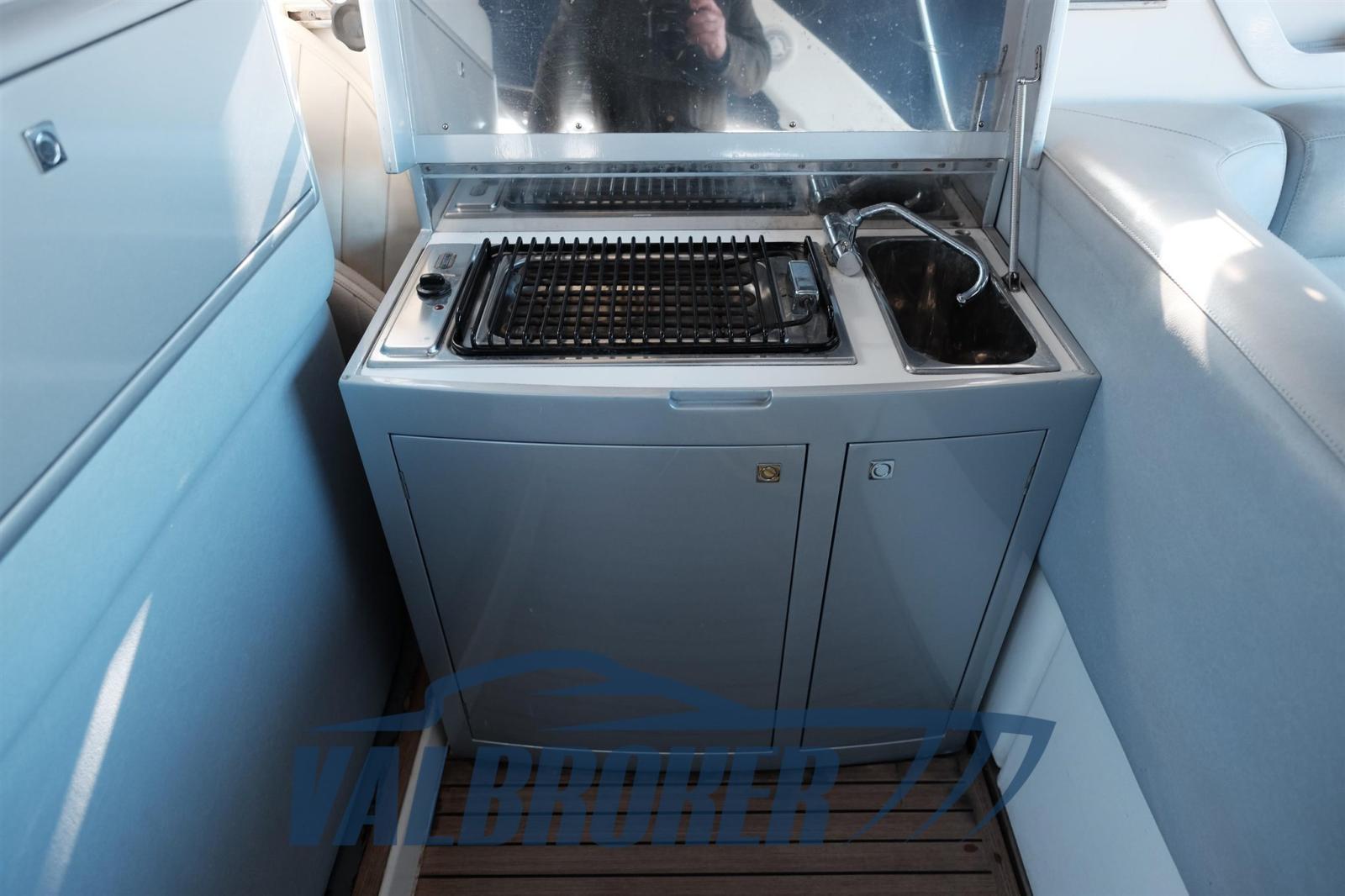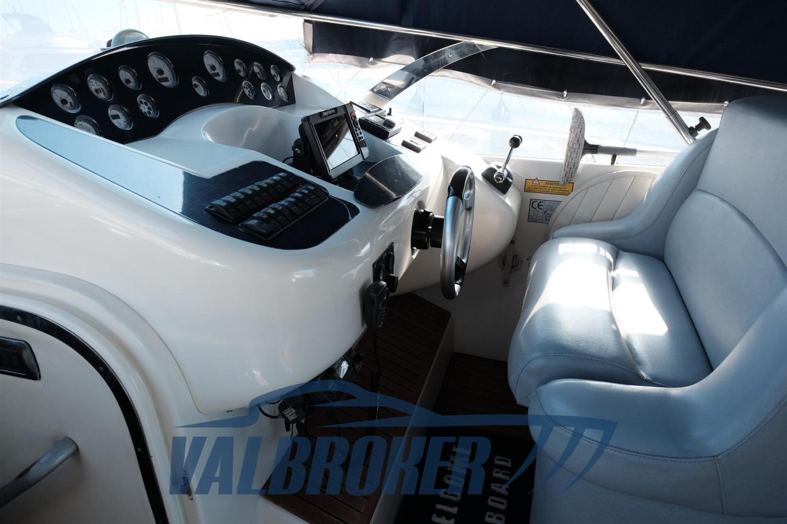 Bateau aux lignes sportives et à l’excellente navigabilité. Moteurs Volvo Penta D6 de 2x370 CV récemment révisés (rehausseurs et injecteurs remplacés) Dinette convertible à l’avant, cabine parentale double, cabine d’invités triple et salle de bain avec douche.
