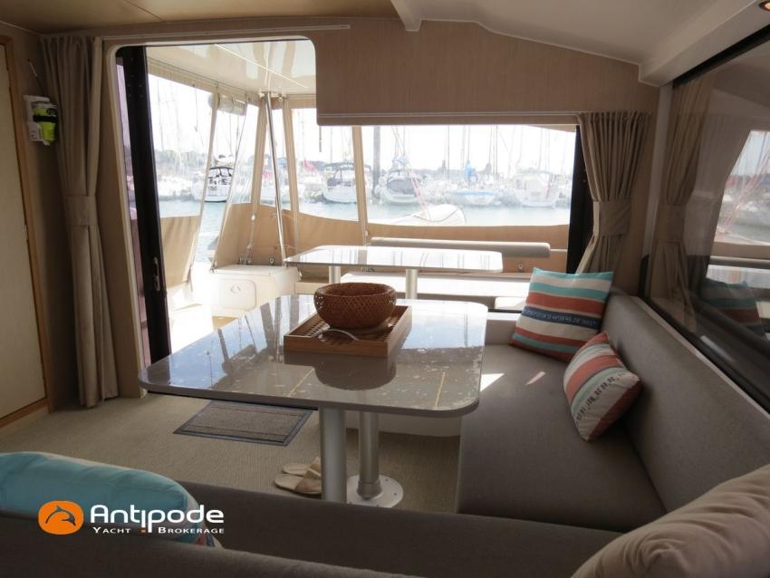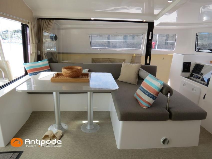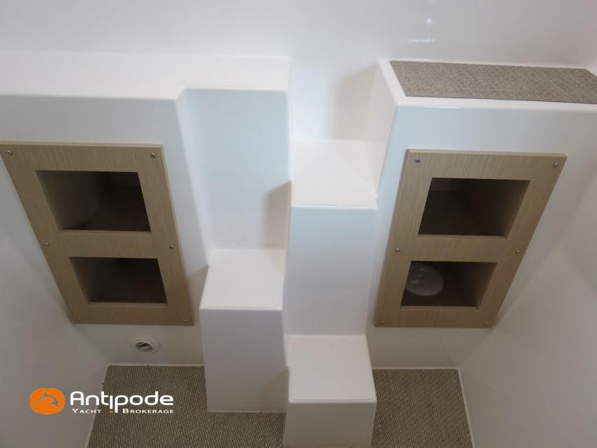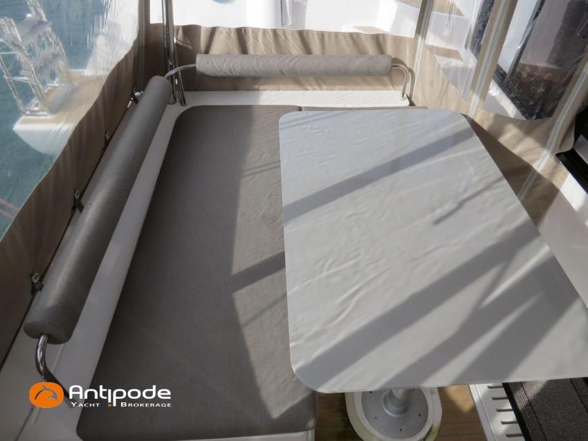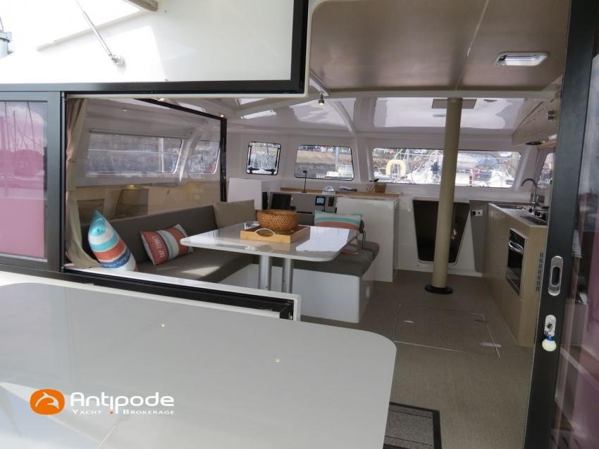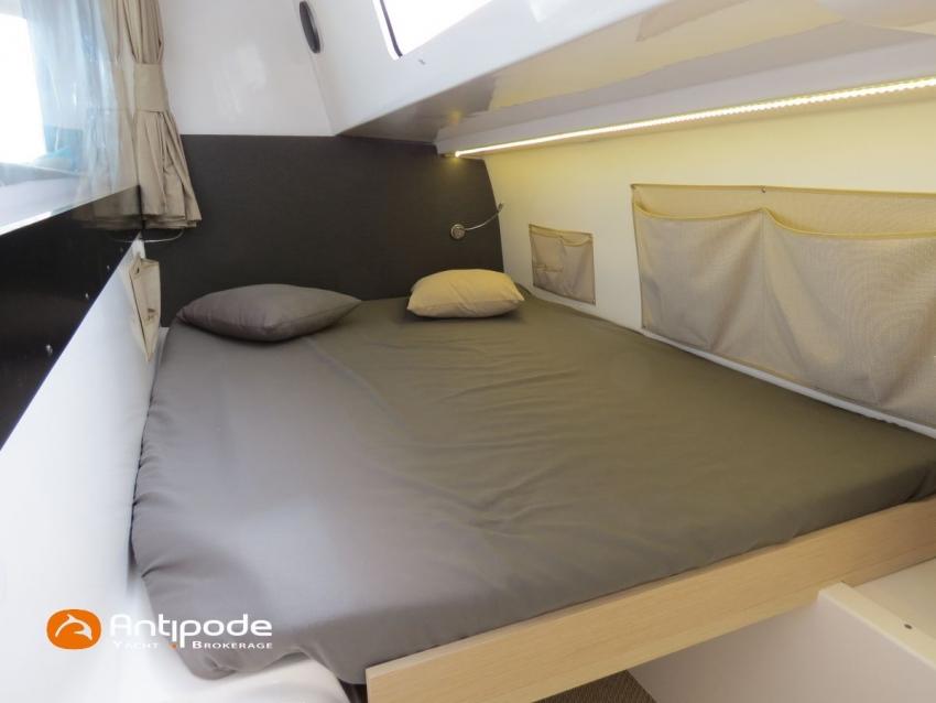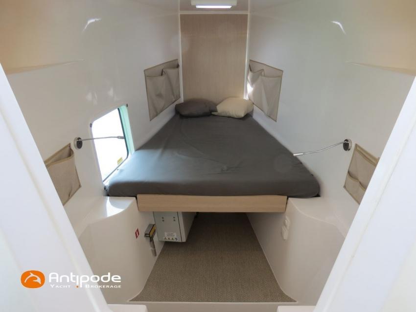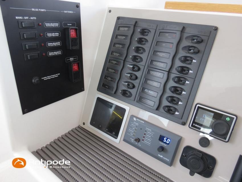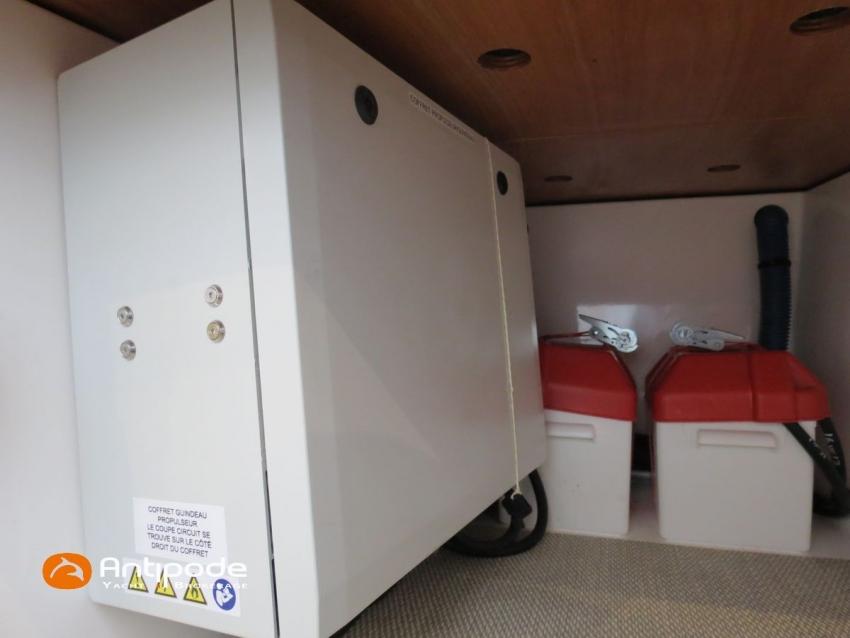 NEEL 43, 2022, 1ère main, VOLVO D2-50F, 50 cv (500.1 h), Propulseur d'étrave, Version Pack Premium, Version d'aménagement intérieur 1 cabine avant, 2 cabines latérales avec cloisons de séparations, 2 Cabines simples aménagées dans les flotteurs, Menuiseries intérieures Alpi, Tapis de sol Bolson dans carré, cabines et accès soute technique, Sous matelas dans les cabines doubles, Rideaux dans les cabines, Meuble haut de rangement au dessus de la cuisine, Table de carré cocktail, Moustiquaires de hublots et panneaux de pont, 2 winchs d'écoutes de spinnakers sur les coques - Antal XT44, 1 winch sur roof pour écoutes de génois ou trinquette - Antal XT48, Winch électrique 2 vitesses sur roof pour drisses et écoutes de GV - Antal XT40, Delphinière composite avec davier intégré, Fond de cockpit Flexyteek, Jupe arrière avec flexyteek et bers d'annexe, Table de cockpit Diner, Housse de barre à roue, Bimini poste de barre avec fermetures parebrise et latérales, Hard top de cockpit, Selleries cockpit et poste de barre - Sunbrella, Taud d'assise du poste de barre et taud de console, Compteur de chaine au poste de barre, Palan de levage d'annexe électrique - Antal line driver + télécommande, Tauds de fermeture arrière complète du cockpit, Mât aluminium classique posé sur le pont, Grand-voile à corne full batten - Incidences, Rail de guindant de grand voile + chariots de lattes, Prises de ris automatiques (x 2), Lazy-bag de grand voile, Lazy-jacks de grand voile, Enrouleur de génois avec tambour sur le pont - Facnor LS180, Génois sur enrouleur - Incidences, Trinquette sur drisse moufflée et emmagasineur - Incidences, Gréement de spi asymétrique, Spinnaker asymétrique 115 m², Chaussette à spi, Gennaker sur emmagasineur - Technique Voile, Code 0 sur emmagasineur - Intuitive Sails, Pilote automatique in board - B&G NAC3, Pupitres de commande du pilote à la table à carte et au poste de barre, Répétiteur poste de barre - B&G Triton 2, Répétiteur à la table à carte - B&G Triton 2, GPS / lecteur de carte au poste de barre - B&G 12 pouces, Radar avec radôme sur support de mât - B&G broadband 4G, Transpondeur AIS (émetteur récepteur) avec switch pour couper l'émission, VHF ASN à la table à carte - B&G V60, VHF portable - Icom, Système audio Fusion MS AV 750 + 4 HP, Balise de détresse, Unité réfrigérante 12 V porte frontale, Conservateur froid négatif (freezer), Chauffe-eau 60 litres - 220 V + échangeur, Gazinière 2 feux + four avec grill, Plancha gaz dans le cockpit, 2 x batteries propulseur et chargeur dédié, Batteries service parc Lithium - 2 x 200Ah, Combiné chargeur convertisseur 12 V / 220 V - 2000W avec commande déportée à la table à carte - Victron Energy, Prises intérieures 220 V / 12 V / USB, Contrôleur / gestionnaire de batteries, Chauffage WEBASTO, Réservoir rigide eaux noires, WC électrique, Panneaux solaires - Solbian 2 x 155W , Douchette de cockpit eau chaude / eau froide, Feux de navigations à Leds, Eclairages intérieurs à Leds, liseuses avec prises USB, éclairage Led dans le cockpit, Radeau de survie + Equipement de sécurité 8 personnes , Mouillage principal ancre Kobra, Amarres et défenses, Annexe + Moteur hors-bord Suzuki 4tps 2.5cv, Visible Bretagne. Pour plus d'informations ou pour fixer un rendez-vous de visite, contact : Jean-Baptiste Lemaire 06 10 25 00 03 - [email protected]