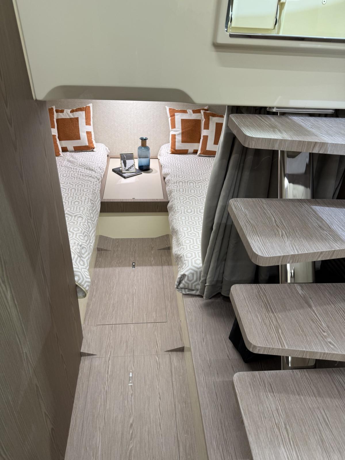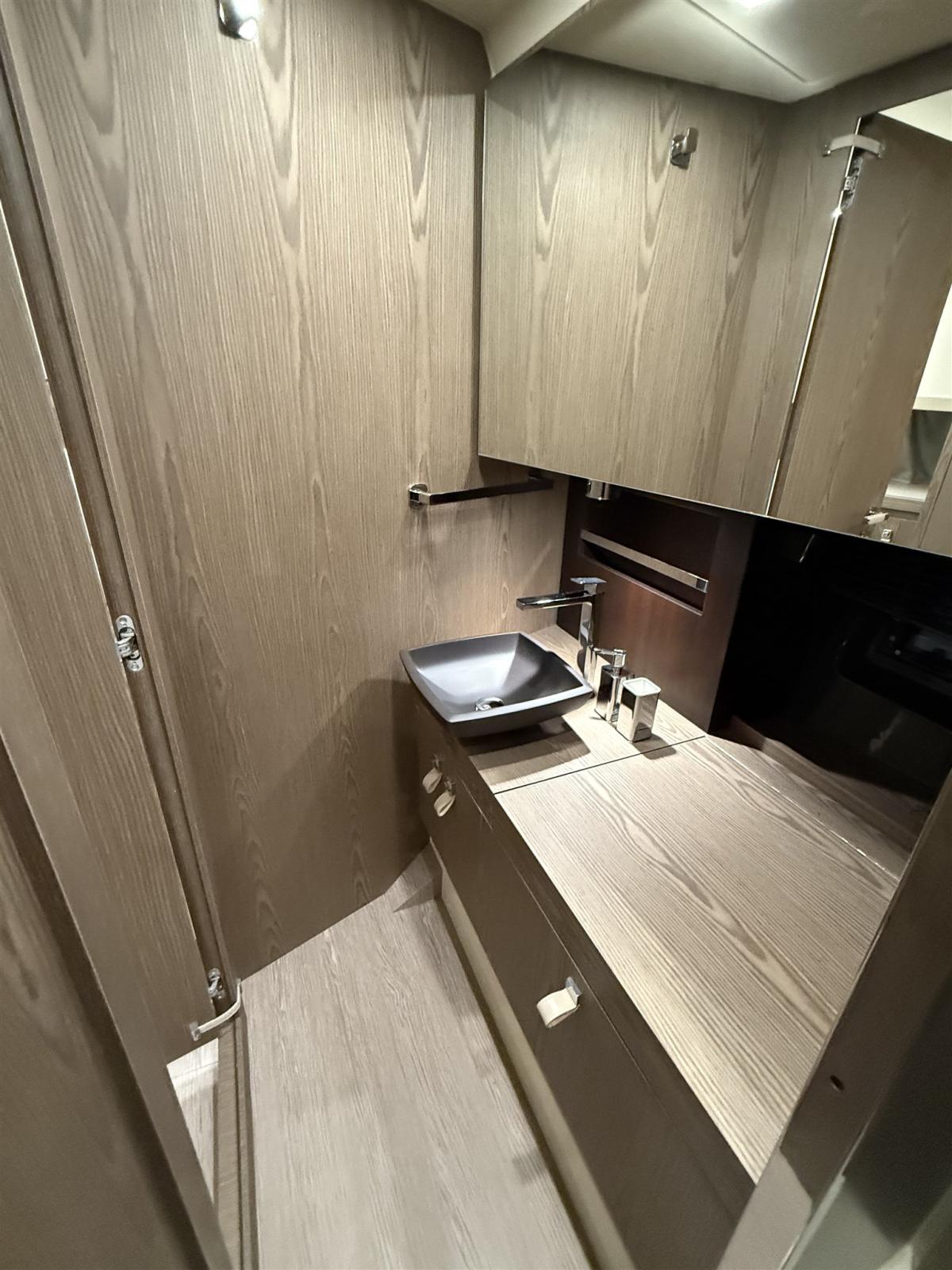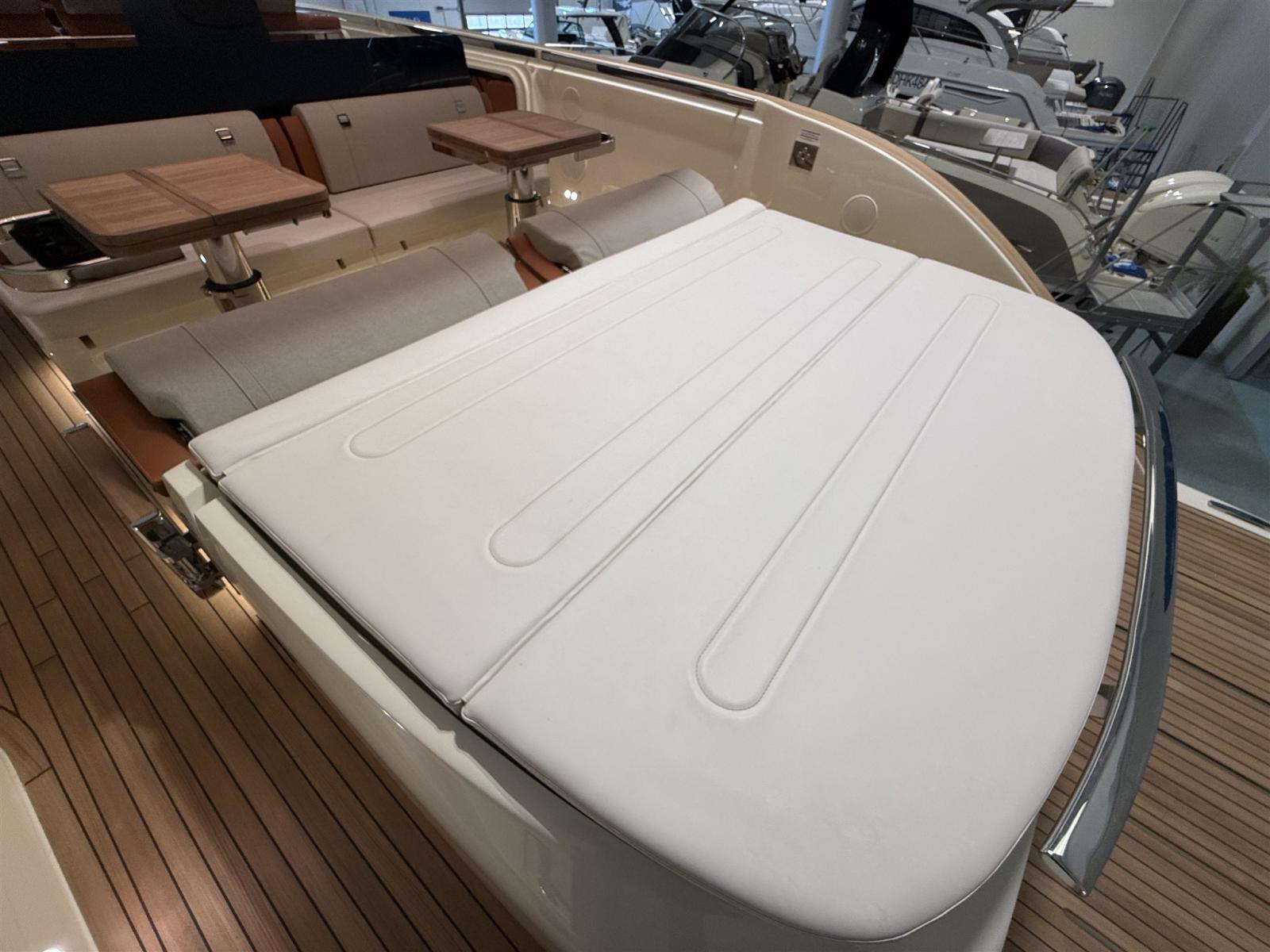 Alarme moteur, Ouverture du compartiment moteur électrique, Auto Dynamic Trim Interceptor, Eau sous pression, Passavant en teck, Couleur spéciale (Spectrum blue), Douche de cockpit, Flaps électriques (Interceptor), Garage à annexe, Hard top (carbonio), Extincteur(s) fixe(s), Indicateurs de flaps, Lavabo dans le cockpit, Éclairage de courtoisie, Passerelle (idraulica a sfilo), Plateforme arrière (affondabile), Pompe de cale automatique, Cockpit en teck, Prise de quai, Guindeau électrique, Echelle de bain, table de cockpit, Corne.