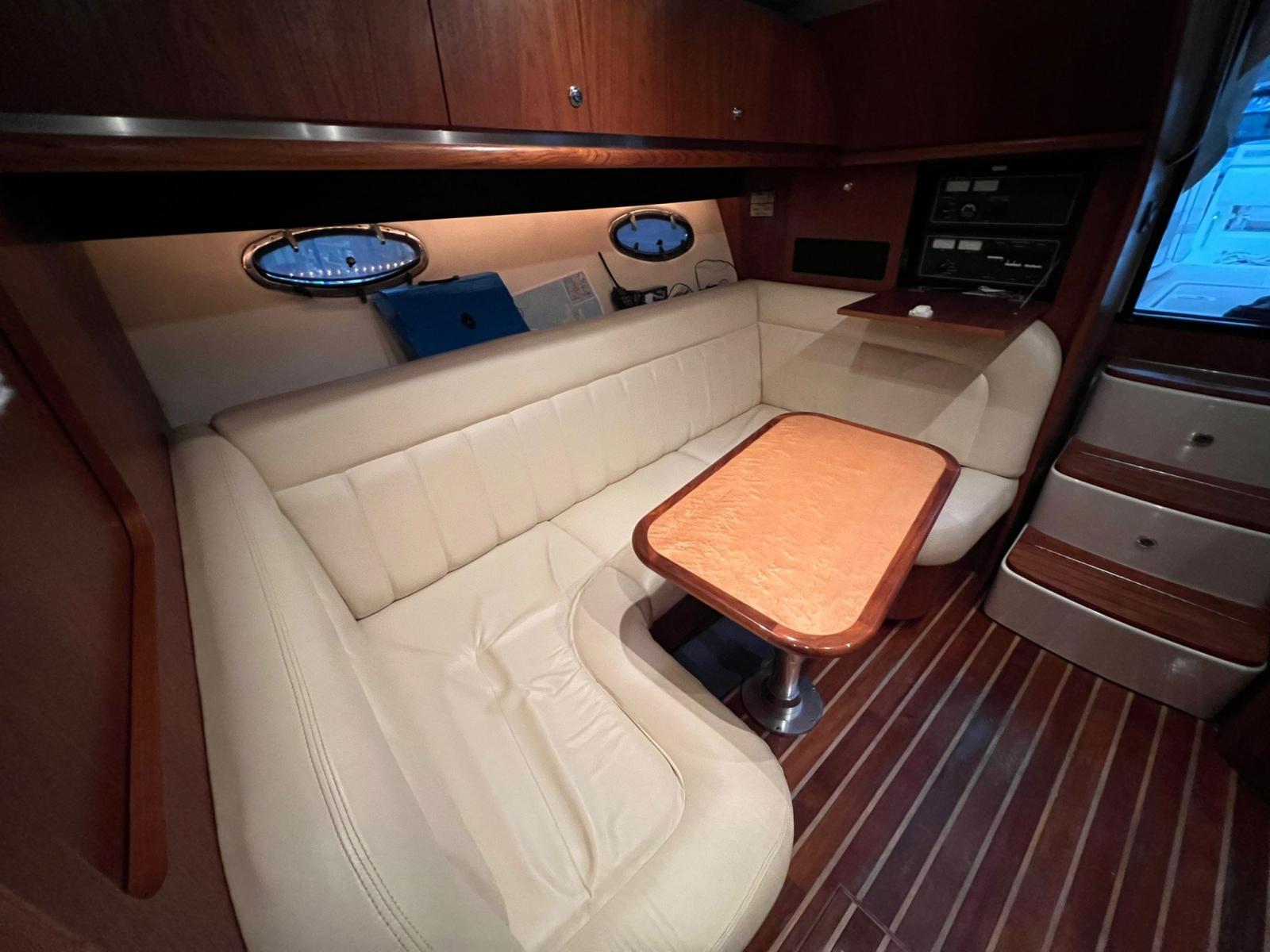 Alarme gaz, Alarme moteur, Alarme de pompe de cale, Eau sous pression, Batteries (nuove 2024), Douche de cockpit, Flaps hydrauliques, Extincteur(s) fixe(s), Plateforme arrière, Pompe de cale automatique, Prise de quai, Guindeau électrique, Echelle de bain, Table pliante de salon, Corne.