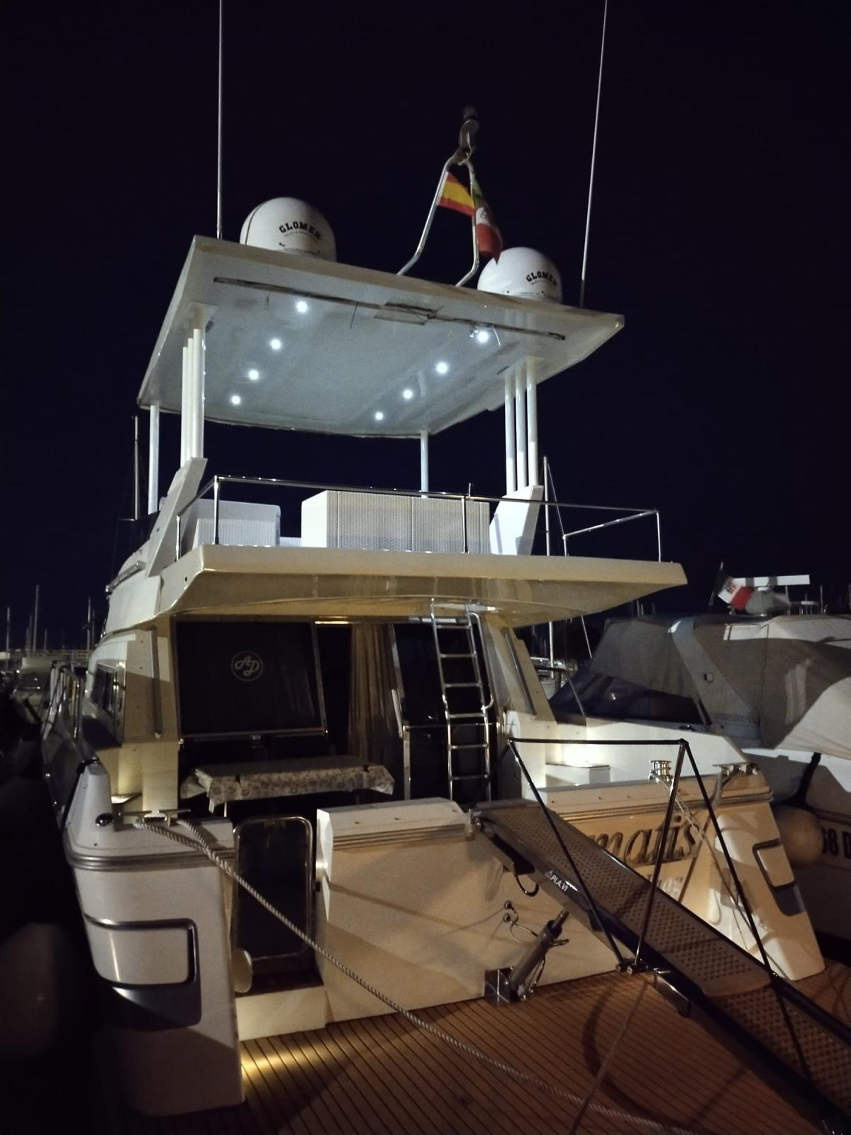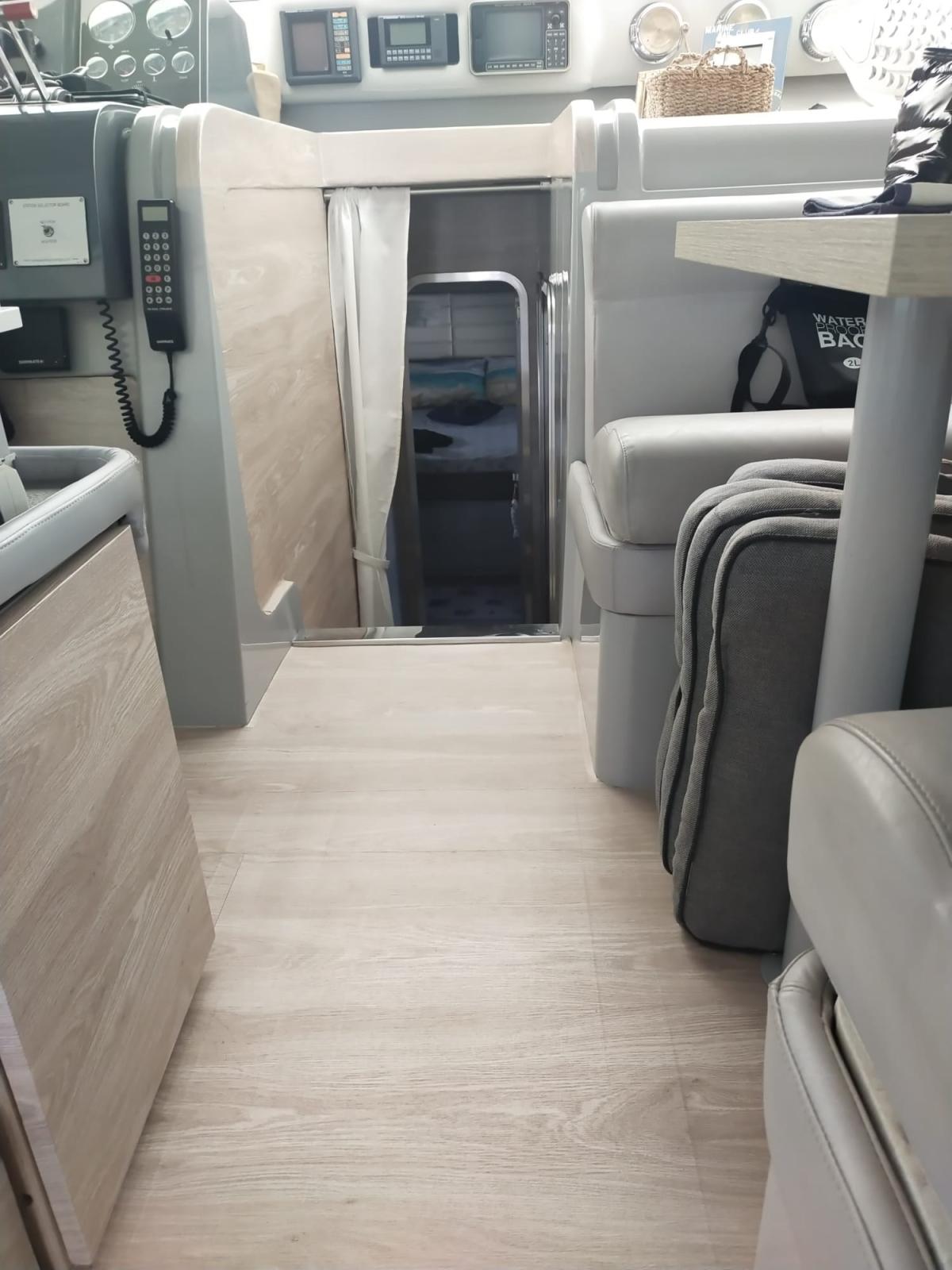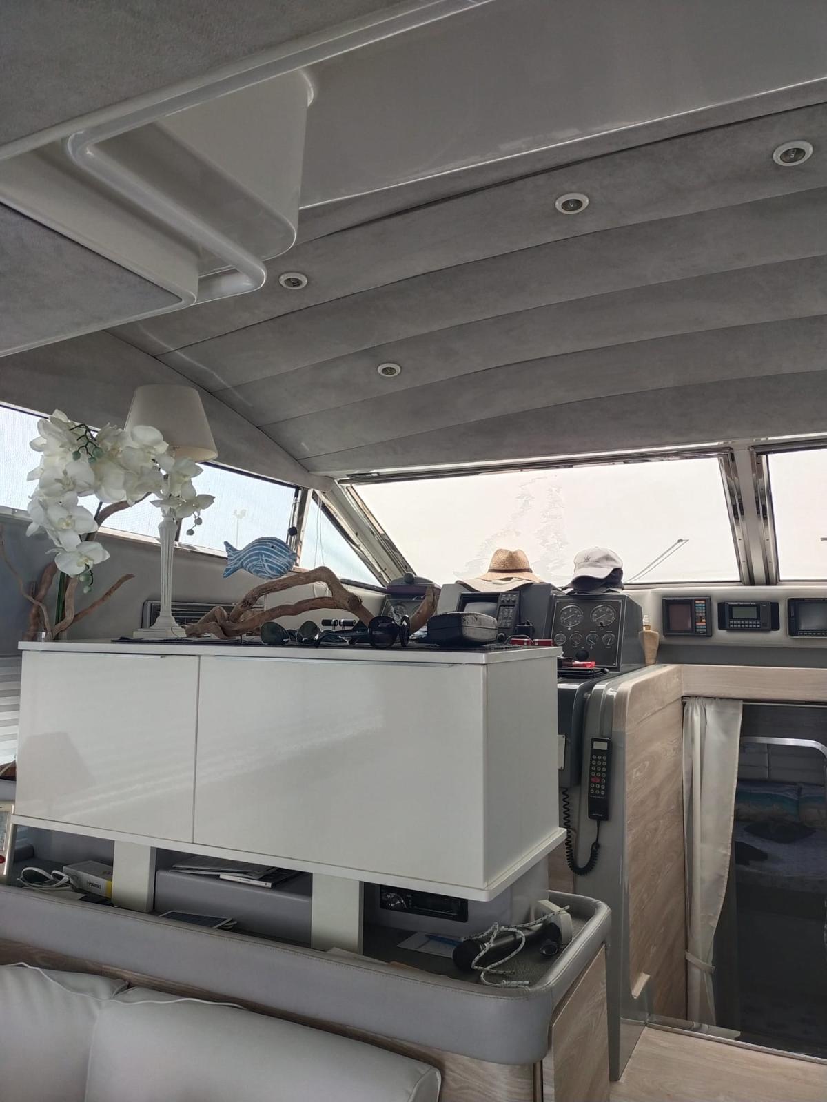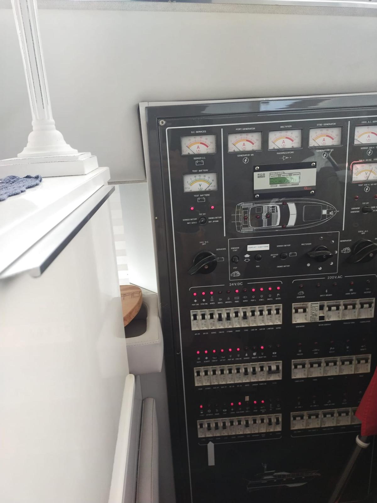 Alarme moteur, Alarme de pompe de cale, Alternateur, Eau sous pression, 4 Batteries, Douche de cockpit, Double barre à roue, Phare de poursuite, Flaps hydrauliques, Hard top, Extincteur(s) fixe(s), Lavage de chaine, Éclairage de courtoisie, Spots sous-marins, Défenses, Passerelle (Idraulica Nuova 2024), Plateforme arrière (Allungata), Pompe de cale automatique, Pompe de Lavage du Pont, Cockpit en teck, Prise de quai, Connexion eau sous pression à quai, Onduleur, Guindeau électrique, Echelle de bain, Corne.