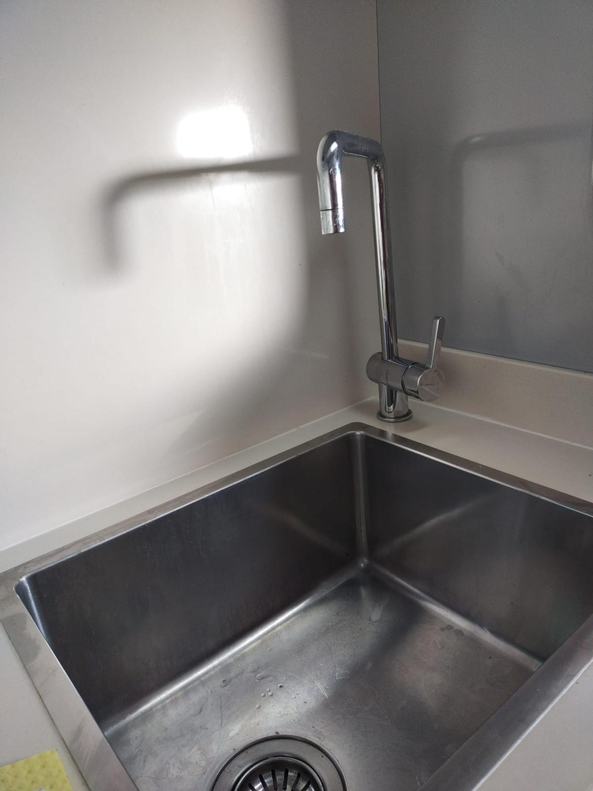 Nouvelle cuisine avec dessus et dos en quartz blanc, évier carré en acier inoxydable, design mixte, plaque à induction à 2 feux, tout nouveau coût 4.500,00