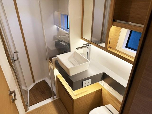 Air conditionné (Tropical 60.000 btu), Ballon d'eau chaude, Dessalinisateur (Osmosea 100 lt/h), Convertisseur (Climma), Toilettes électriques.