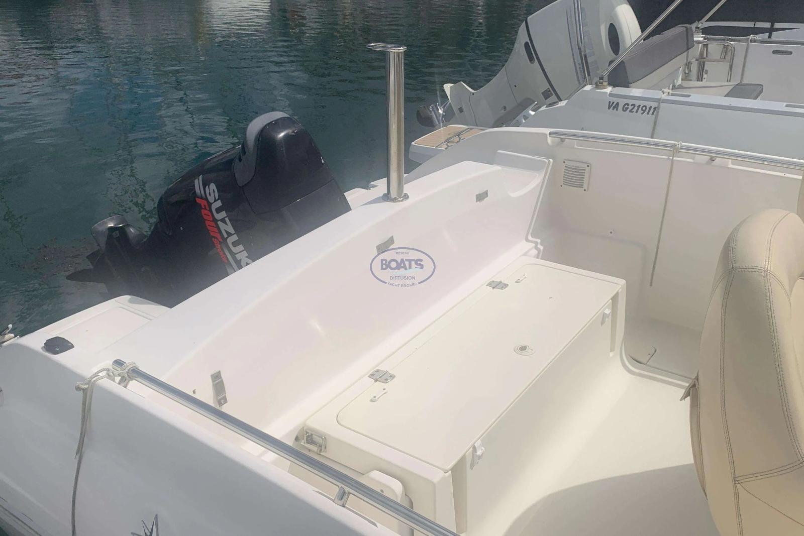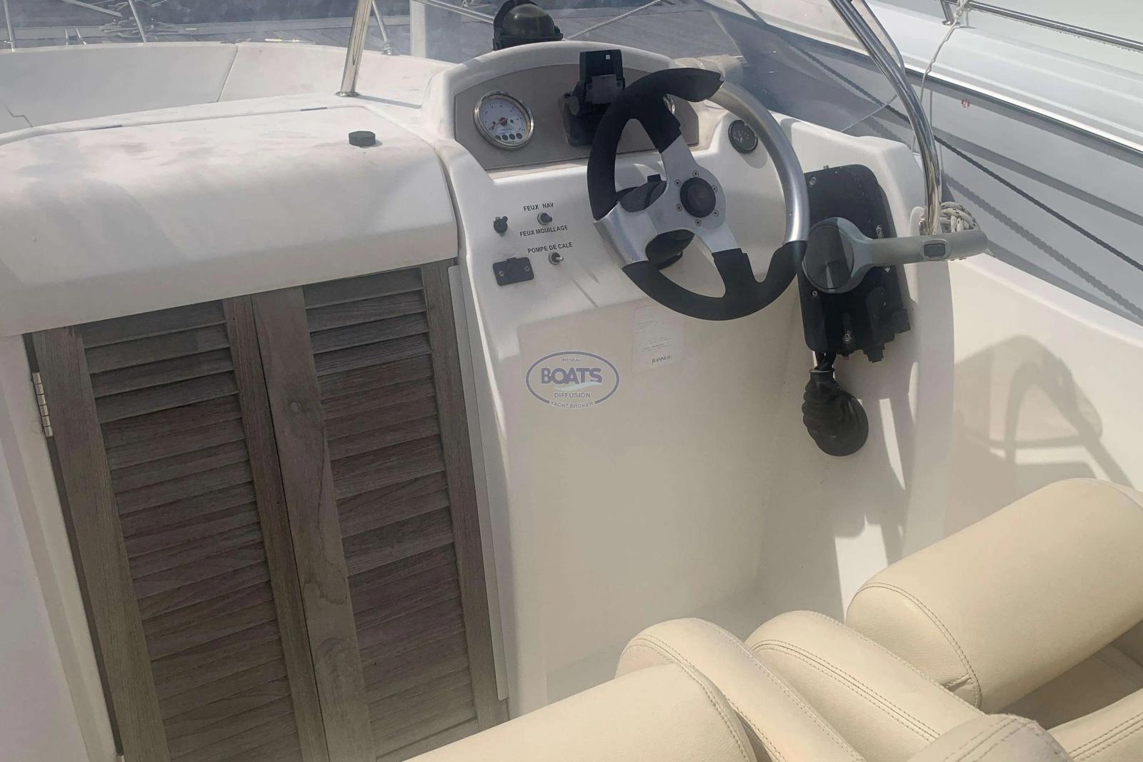Jeanneau Cap Camarat 635 Open (2008) – Suzuki 140 ch – 550 h – Prêt à naviguer Open sportif et convivial, le Cap Camarat 635 combine style, stabilité et performances. Coque en V évolutif en polyester, grand espace de circulation et fiabilité du Suzuki 140 ch.