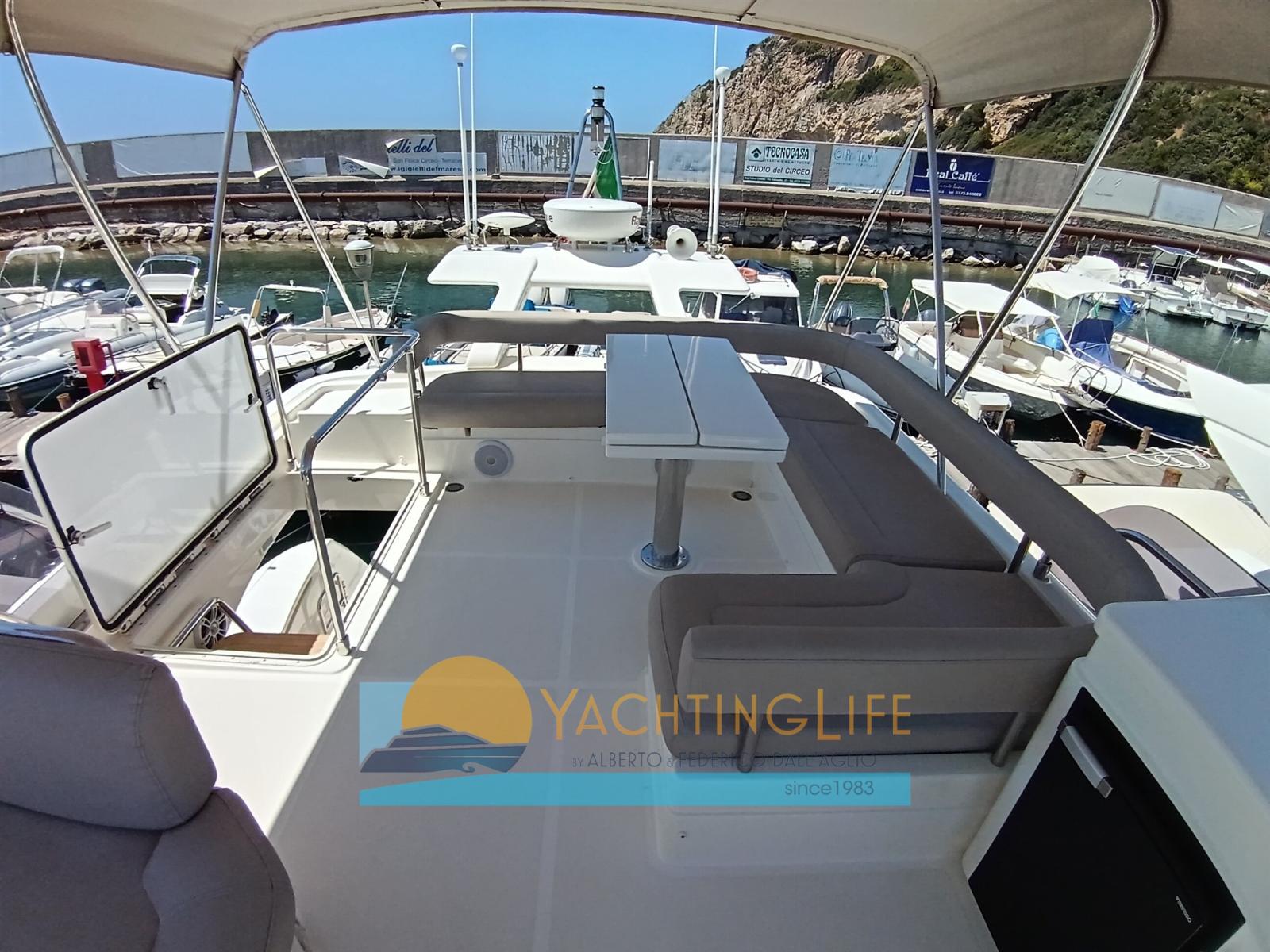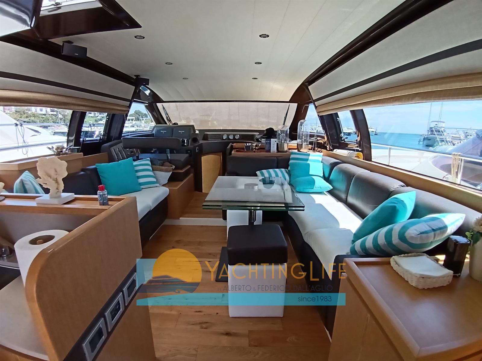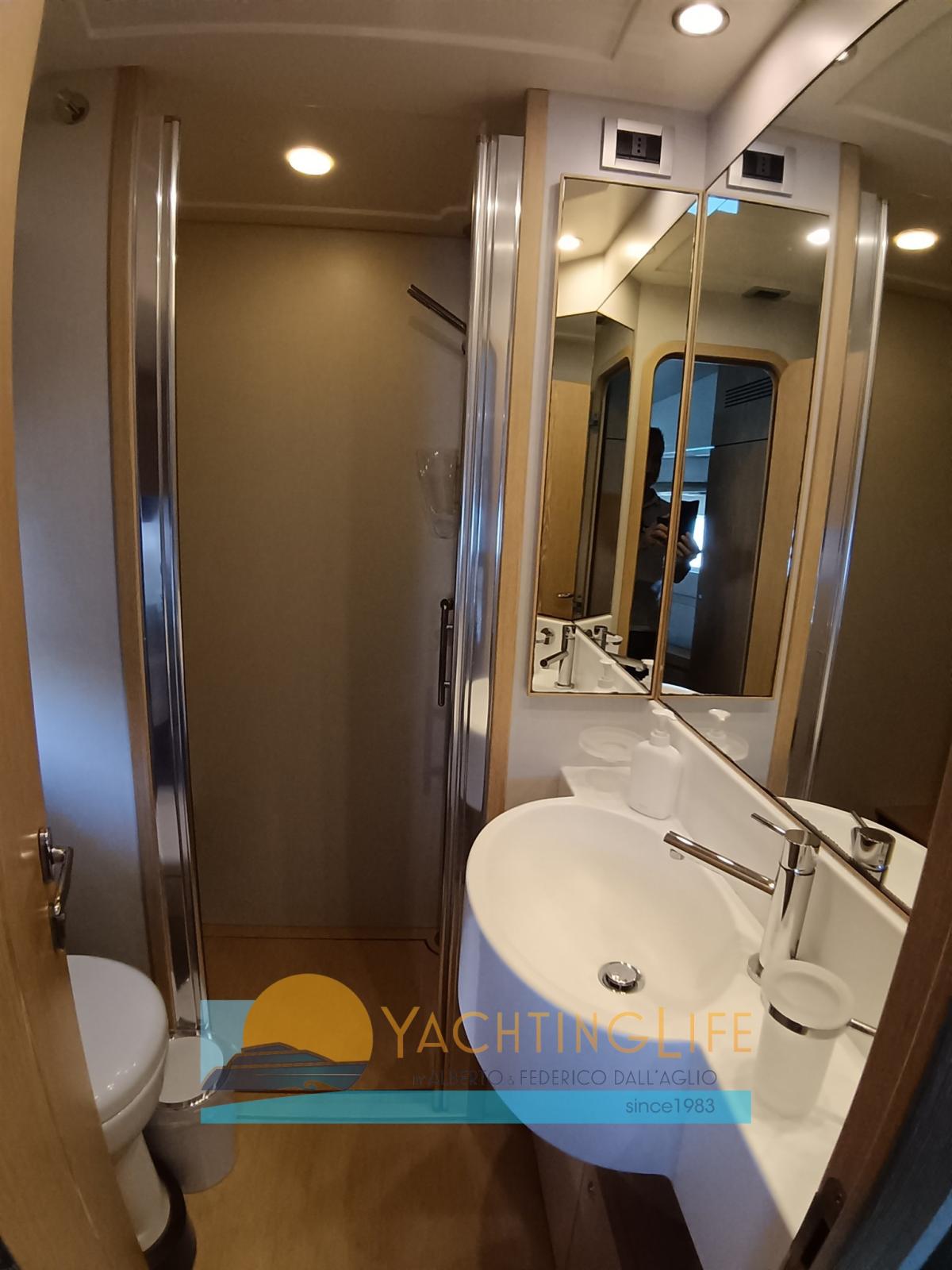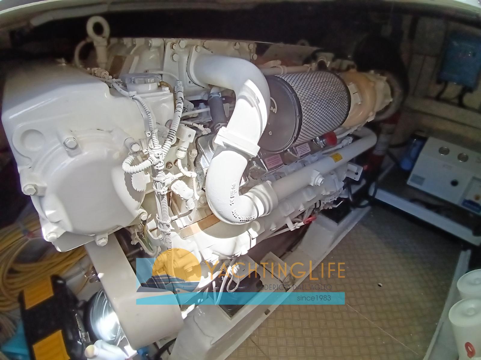 Alarme moteur, Alarme de pompe de cale, Alternateur, Eau sous pression, Douche de cockpit, Double barre à roue, Flaps hydrauliques, Extincteur(s) fixe(s), Indicateurs de flaps, Lavage de chaine, Éclairage de courtoisie, Spots sous-marins, Passerelle (idraulica), Plateforme arrière, Pompe de cale automatique, Porte latérale, Cockpit en teck, Prise de quai, Guindeau électrique, Echelle de bain, Selles pour Annexe, table de cockpit (in vetro e acciaio), Corne, 2 Winch électrique arrière.