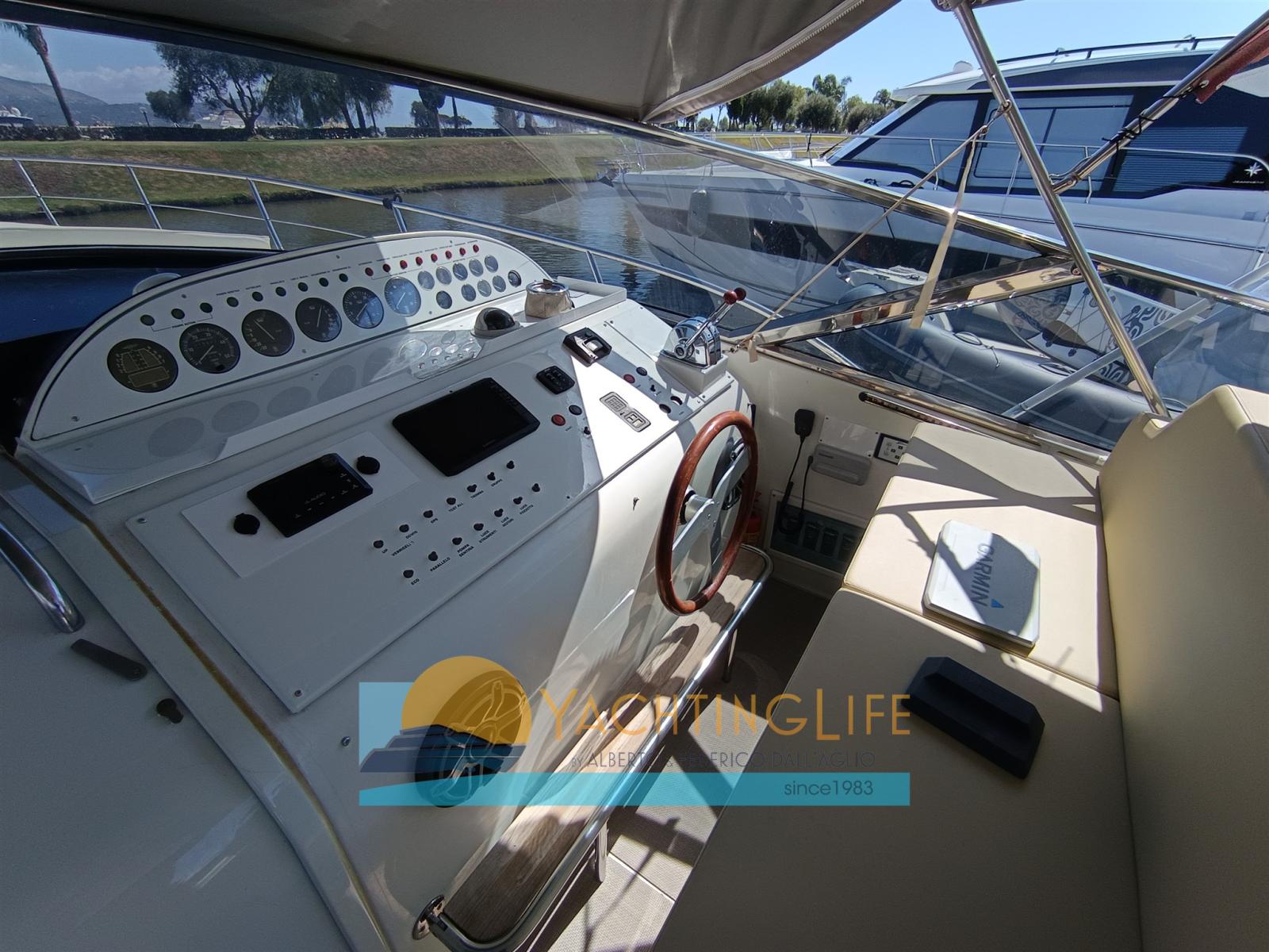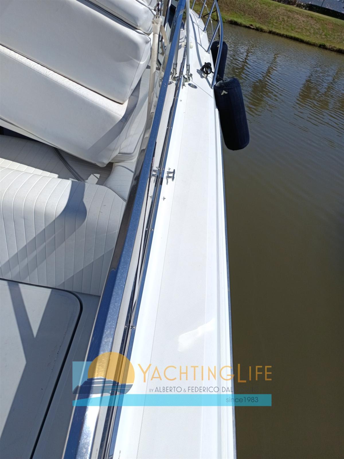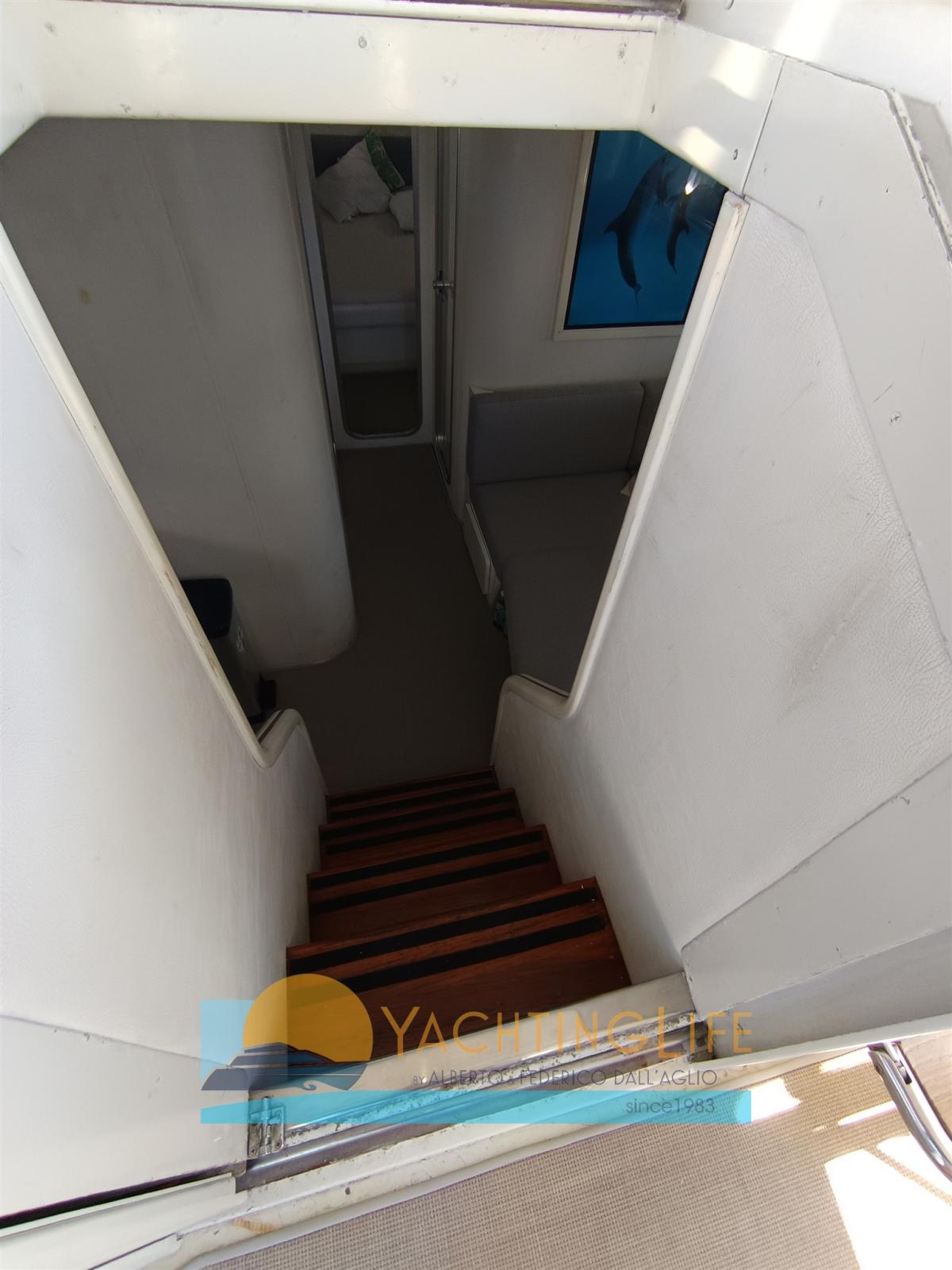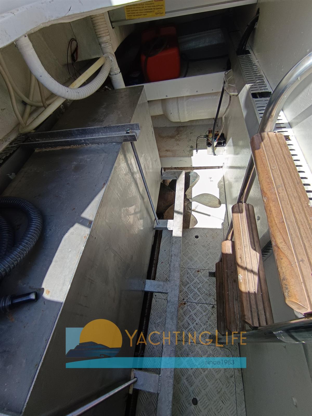 Alarme moteur, Alarme de pompe de cale, Ligne d'arbre de rechange, Eau sous pression, Douche de cockpit, 2 Hélice de rechange, Flaps hydrauliques (pompa nuova), Indicateurs de flaps (nuovi), Éclairage de courtoisie (a led nuove), Spots sous-marins (Nuove), Moteur hors-bord pour annexe (Suzuki 4hp 4t), Passerelle (idraulica Opac a scomparsa), Plateforme arrière (allungata), Pompe de cale automatique, Porte latérale, Prise de quai, Guindeau électrique, Echelle de bain (modificata), Annexe (Eurovinil pneumatico), Corne.