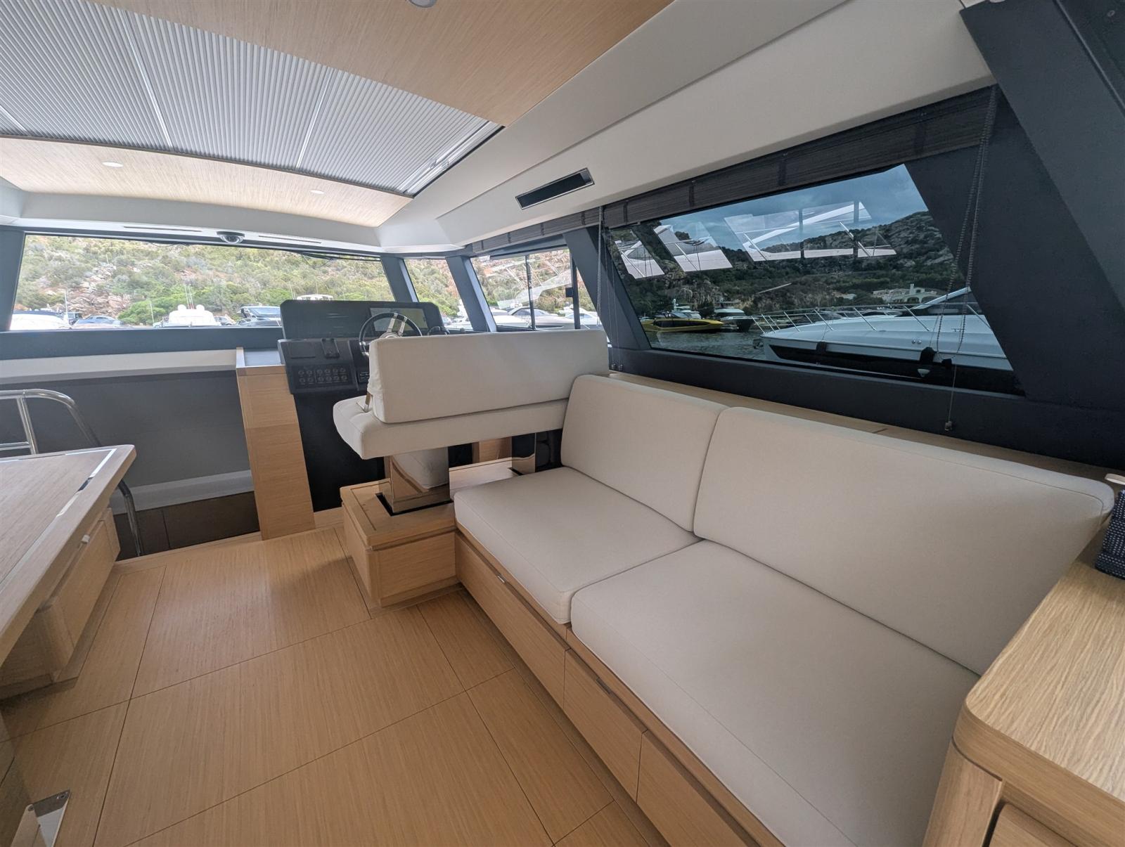 Le Pardo GT 52 a été créé pour ceux qui veulent l’équilibre parfait entre confort et navigation sportive : beaucoup d’espace, un maximum de détente et un équipement complet pour les longs séjours, mais aussi des performances élevées et des lignes dynamiques. Le GT 52 s’avère donc être le choix idéal pour accueillir les clients et profiter de la mer sans compromis. La GT 52 représente une synthèse complète entre les caractéristiques les plus populaires de la gamme Walkaround et celles de la gamme Endurance. Il reprend le design emblématique de Pardo – avec l’arc inversé, les lignes épurées et les formes modernes – en intégrant harmonieusement certains éléments distinctifs des deux gammes. En navigation, il assure vitesse de croisière, sécurité et manœuvrabilité intuitive. À bord, il se distingue par sa grande habitabilité : un grand pont qui facilite le passage de la proue à la poupe et des intérieurs lumineux et spacieux, conçus en continuité avec les extérieurs grâce aux grandes fenêtres panoramiques qui peuvent être ouvertes. Conçu pour maintenir la continuité entre l’extérieur et l’intérieur, pour apporter la vue sur la mer même aux zones couvertes, le salon sur le pont principal est conçu pour offrir une merveilleuse sensation de liberté et de luminosité à ses invités.