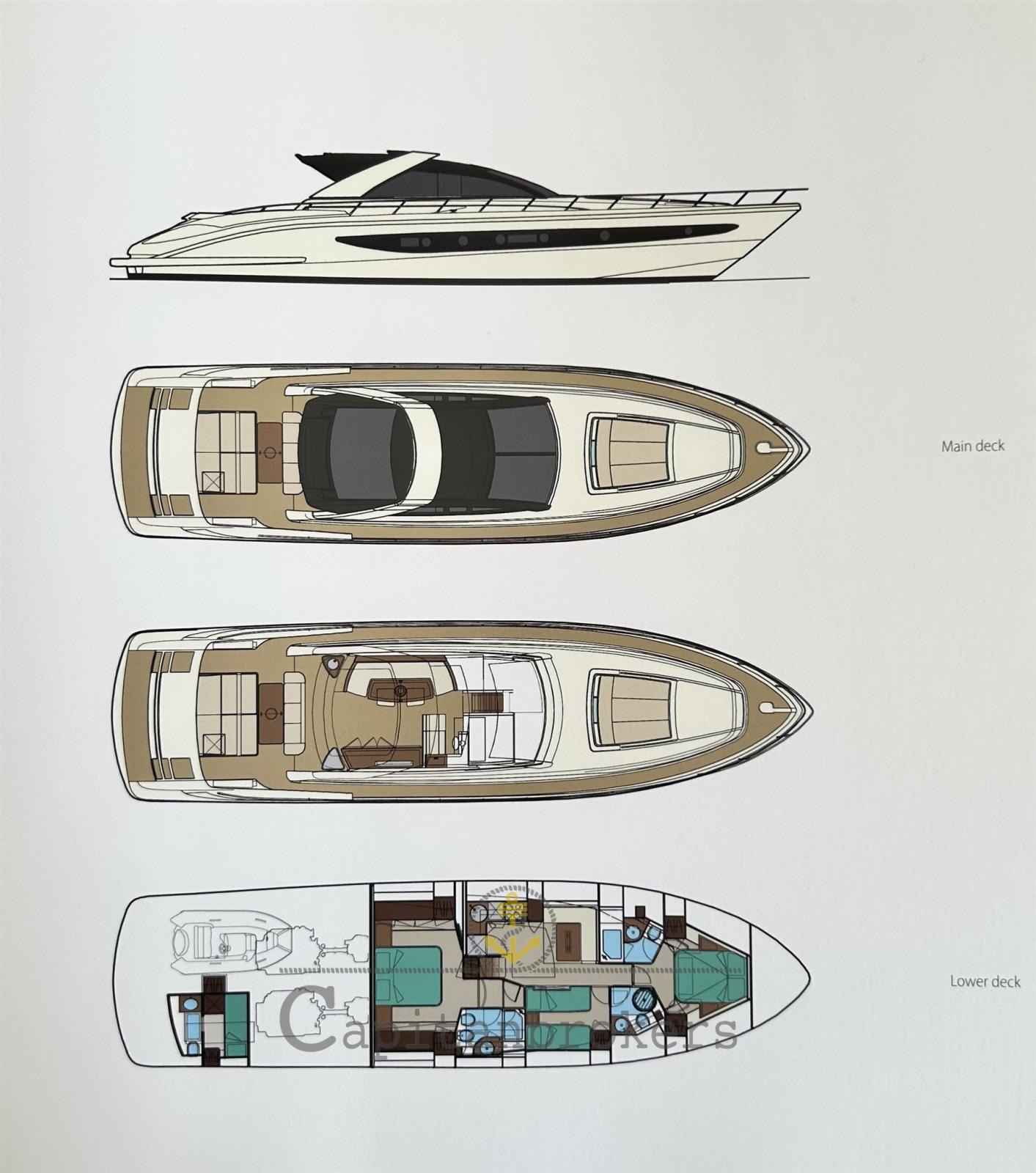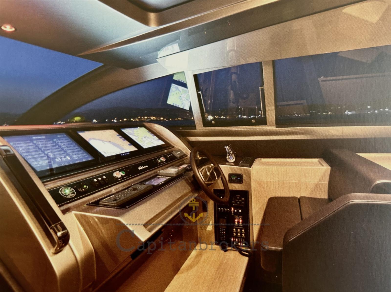 Alarme moteur, Alarme de pompe de cale, Douche de cockpit, Flaps électriques, Garage à annexe (Idraulico), Hard top (con apertura elettrica), Indicateurs de flaps, Lavage de chaine, Lavabo dans le cockpit, Passerelle (idraulica telescopica), Plateforme arrière (swimplatform), Pompe de cale automatique, Pompe de cale manuelle, Porte latérale, Cockpit en teck, Prise de quai, Connexion eau sous pression à quai, Guindeau électrique, Echelle de bain (idraulica), table de cockpit, Annexe (Riva modello Avon Idrogetto), 3 Winch électrique (n.1 prua, n.2 poppa).