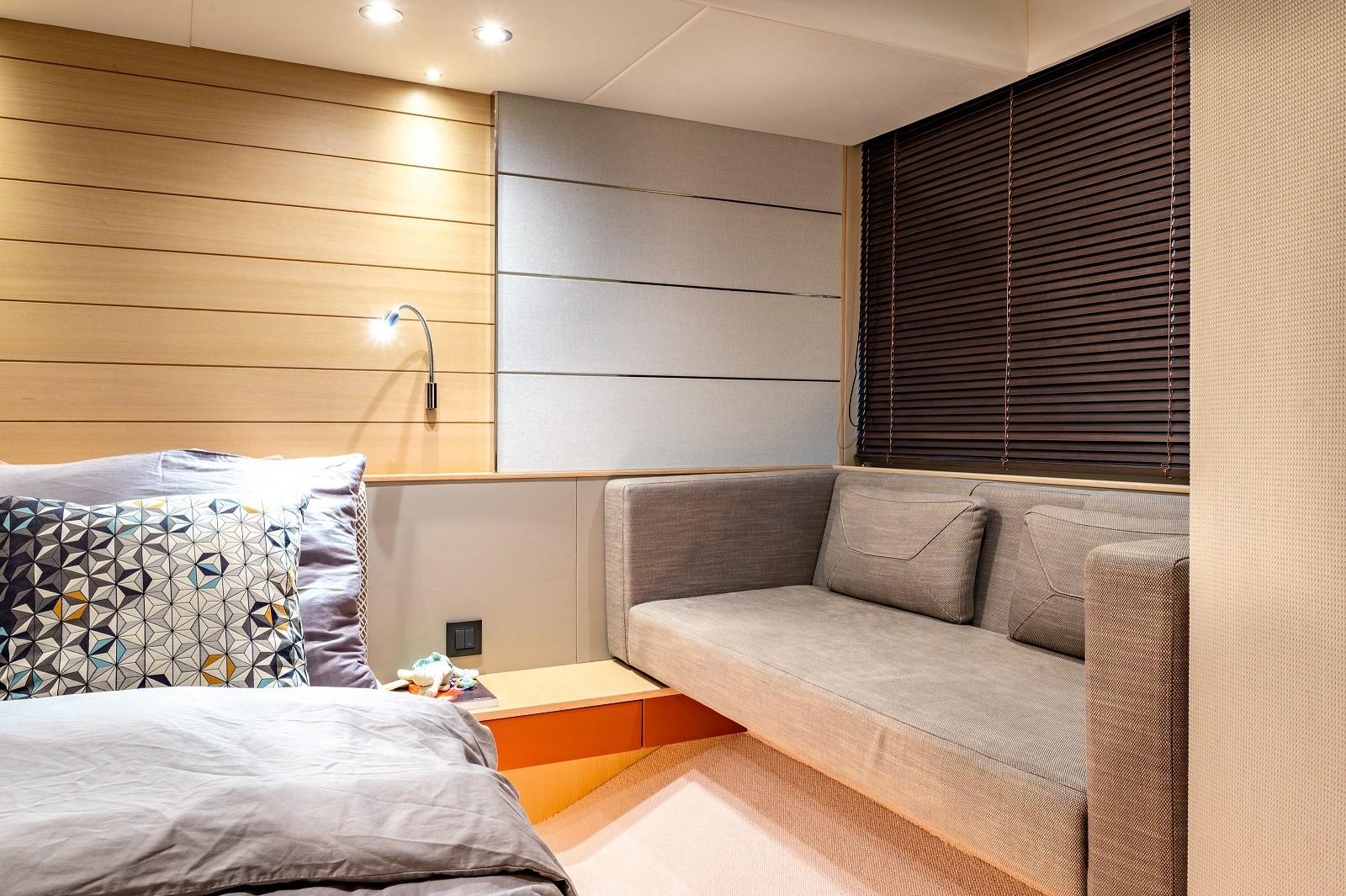 Ce sportcruiser dispose de trois cabines, peut accueillir jusqu’à six passagers et dispose d’espaces de confort et de style confortable.