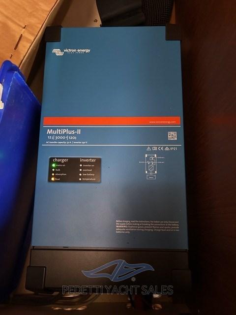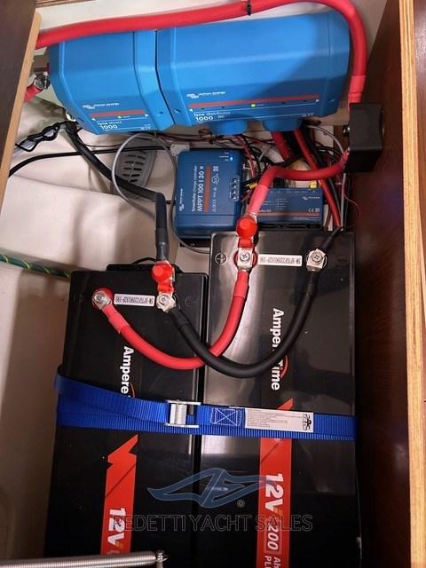 Alarme gaz, Alarme moteur, Alarme de pompe de cale, 2 Eau sous pression (Doppia autoclave), 4 Batteries (AGM 105 amp 2024), Chargeur de batterie (Victron Energy 2024), Câble d’alimentation à quai, Douche de cockpit, Hélice de rechange, Lavage de chaine, Spots sous-marins (Ocean led), Moniteur de batterie, 2 Panneau solaire (200 W), Passerelle (Carbonio), 3 Pompe de cale automatique, Cockpit en teck (Flexiteak), Prise de quai, Connexion eau sous pression à quai, Rollbar, Guindeau électrique, Gréement Rod, Echelle de bain, Chaise support HB, table de cockpit, 4 Winch, Windex.
