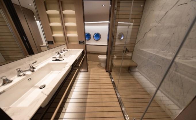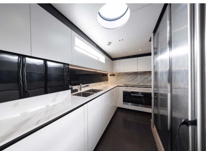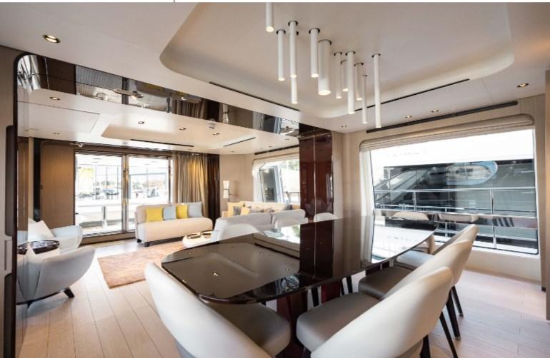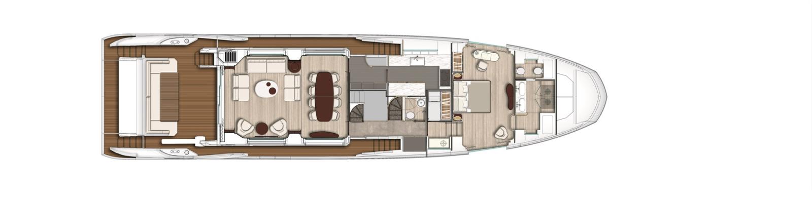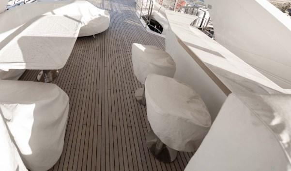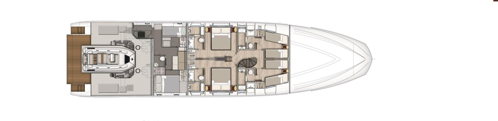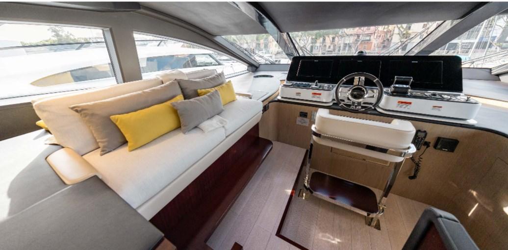 Alarme moteur, Alarme de pompe de cale, Passavant en teck, Flaps hydrauliques, Garage à annexe, Hard top, Extincteur(s) fixe(s), Compresseur de plongée, Indicateurs de flaps, Éclairage de courtoisie, Spots sous-marins, Passerelle, Plateforme arrière (Beach), Pont en teck, Porte latérale, Cockpit en teck, Prise de quai, Guindeau Hydraulique, Stabilisateurs (Pinne Zero speed), Winch hydraulique.