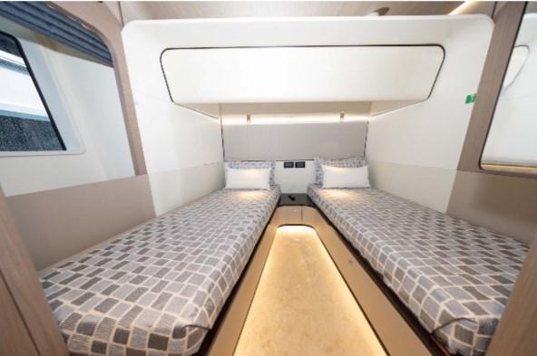 BBQ/ Grill, Ballon d'eau chaude, Coffre-fort, Connexion Internet par satellite, Contrôleur domotique, Gradateur de lumière, Dessalinisateur, Cuve à eaux noires, Plancher intérieur en bois, Prises interieures 12v, Prises interieures 220v, Caméra vidéo.